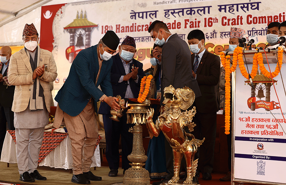 काठमाडौँ – प्रधानमन्त्री शेरबहादुर देउवाले प्राचीन कला, संस्कृति र सीप विश्वमा पुर्याउन हस्तकला उद्योगको भूमिका महत्वपूर्ण हुने बताउनुभएको छ । नेपाल हस्तकला महासङ्घको १८औँ हस्तकला व्यापार मेला तथा १६औँ हस्तकला प्रतियोगिता उद्घाटन समारोहलाई आज राजधानीमा सम्बोधन गर्नुहुँदै उहाँले आन्तरिक रोजगारी सिर्जनामासमेत यो उद्योगले सहयोग रहेको बताउनुभयो ।