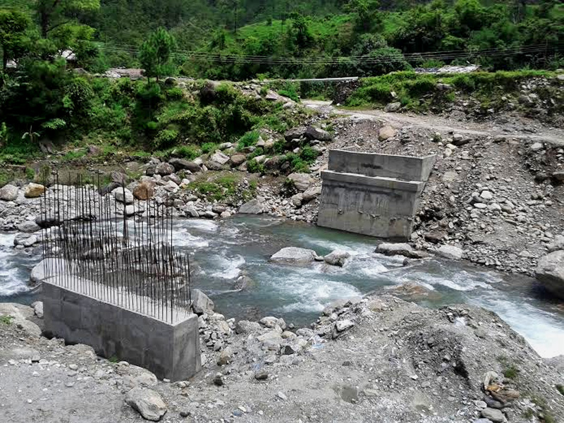 An under-construction bridge in Kordhali Gad along the Sanphe- Martadi road in Bajura district on Monday, August 31, 2015. Photo: Prakash Singh