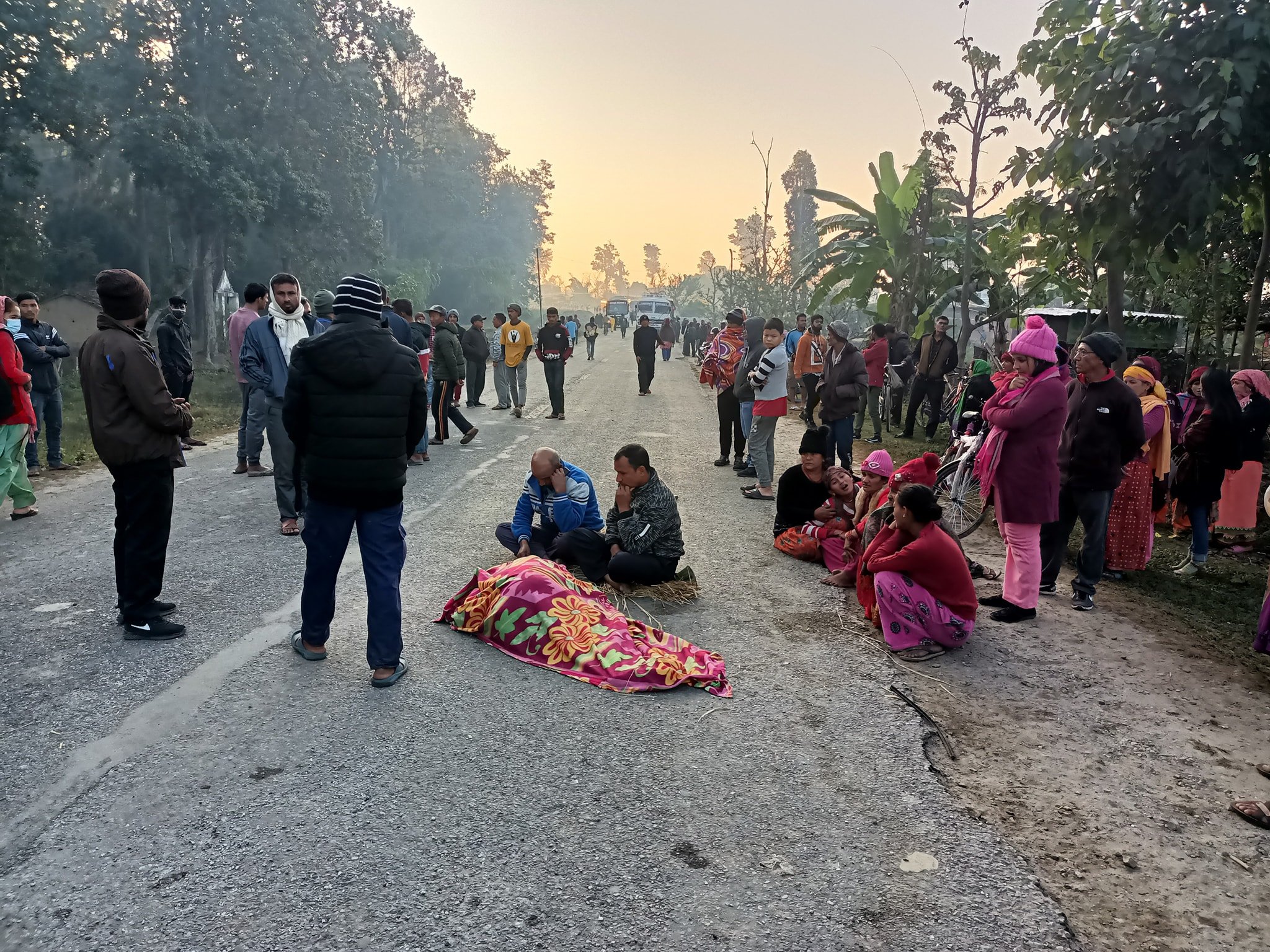 स्थानीय बासिन्दाले ठक्कर दिने गाडीको पहिचान गरी कारबाही गरिनुपर्ने र मृतक परिवारलाई क्षतिपूर्ति दिनुपर्ने माग गर्दै पूर्वपश्चिम राजमार्गमा अवरुद्ध गरेका छन् ।