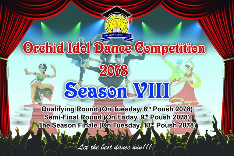 विद्यालयमा अध्ययनरत विद्यार्थीहरुको बहुप्रतिभालाई प्रस्फुटन गर्ने उद्देश्यले प्रत्येक बर्ष आयोजना हुने अर्किड आइडल डान्स कम्पिटिसनको यस बर्ष आठौँ संस्करण हो । संस्कार सहितको शिक्षा प्रदान गर्दै आइरहेको यस अर्किड स्कुलमा पढाइसँगै अतिरिक्त क्रियाकलापमा समेत जोड दिदै आइरहेको छ ।