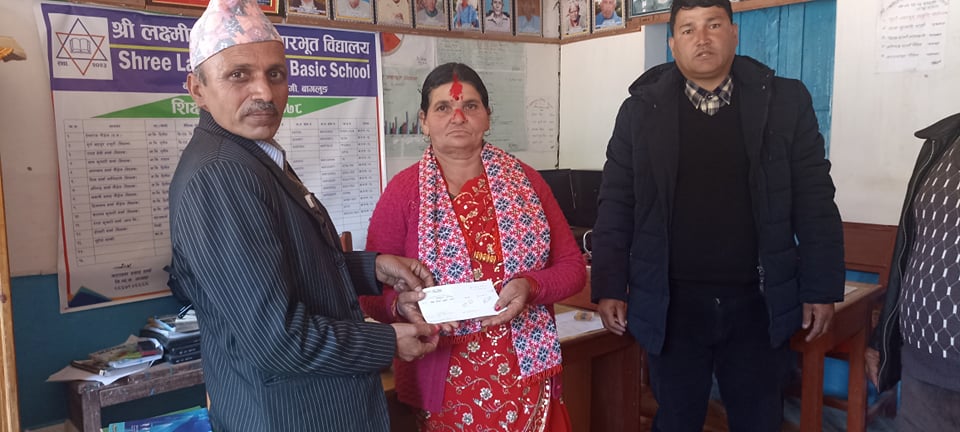 काठमाडौँ – बाग्लूङ नगरपालिका–१२, कान्लेका नवराज चापागाईले आफ्नो छोरा सिन्नेन चापागाईको पहिलो जन्मदिनको अवसरमा बिद्यालयमा एक लाख रूपैयाँको “भीमकुमारी–रमाकान्त गरिब तथा जेहेन्दार छात्रवृत्ति अक्षय कोष” स्थापना गरेका छन् । उनले लक्ष्मीनारायण आधारभुत विद्यालयमा छात्रवृत्ति अक्षय कोष स्थापना गरेका हुन् ।  शिक्षाप्रेमी, समाजसेवी तथा प्रगतिशील बिचारधाराका धनी चापागाईंले शिक्षा क्षेत्रको बिकासबाट समाजको चेतनास्तरमा वृद्धि गर्न, जेहेन्दार, आर्थिक अवस्था कमजोर भएका र लोपोन्मुख समुदायका बिधार्थीलाई पठन–पाठनमा प्रोत्साहित गर्न सो अक्षय कोषको स्थापना गरेका हुन् ।