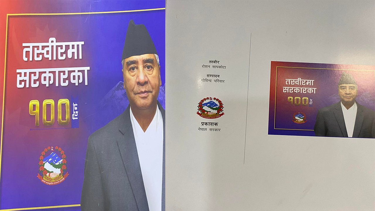 नेपाल सरकार प्रकाशक रहेको तस्वीरमा सरकारका १०० दिन पुस्तकमा नेपालको सम्सदले सर्बसम्मत रुपले पास गरेको नेपालको चुच्चे नक्शा कता गयो प्रम देउवाज्यु ? कि तपाईंलाई सम्सदको निर्णय मान्य छैन ? होईन भने यो हदको लापरवाही गर्नेलाई कार्वाही भएको र प्रम देउवाले सार्वजनिक रुपमा माफी मगेको खबर सुन्न नेपाली जनता आतुर छन ।’