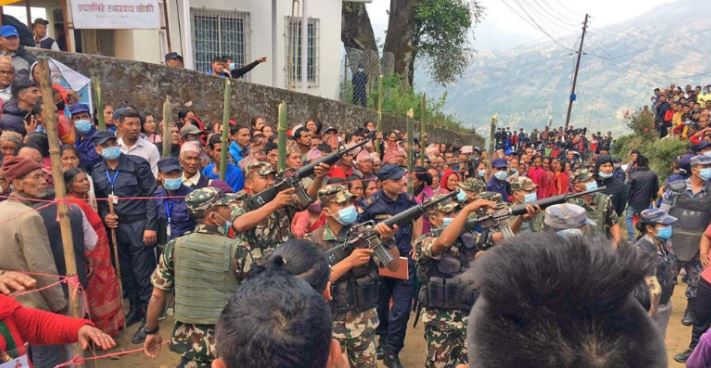 काठमाडौँ — सिन्धुपाल्चोकको मेलम्ची–४ मा अशक्त र अपांगता भएका व्यक्तिहरुलाई आफन्तले नभई दलका प्रतिनिधिहरुले मतदान गर्न सघाएपछि केहीबेर तनाव भएको छ । मेलम्ची नगरपालिकाको ज्यामिरेमा रहेको स्वास्थ्य चौकीको बुथमा ठेलमठेल भएपछि नेपाली सेनाले स्थिति नियन्त्रणमा लिएको थियो । नेपाली सेनाले हतियार तेर्स्याएको तस्वीरमा देखिन्छ ।