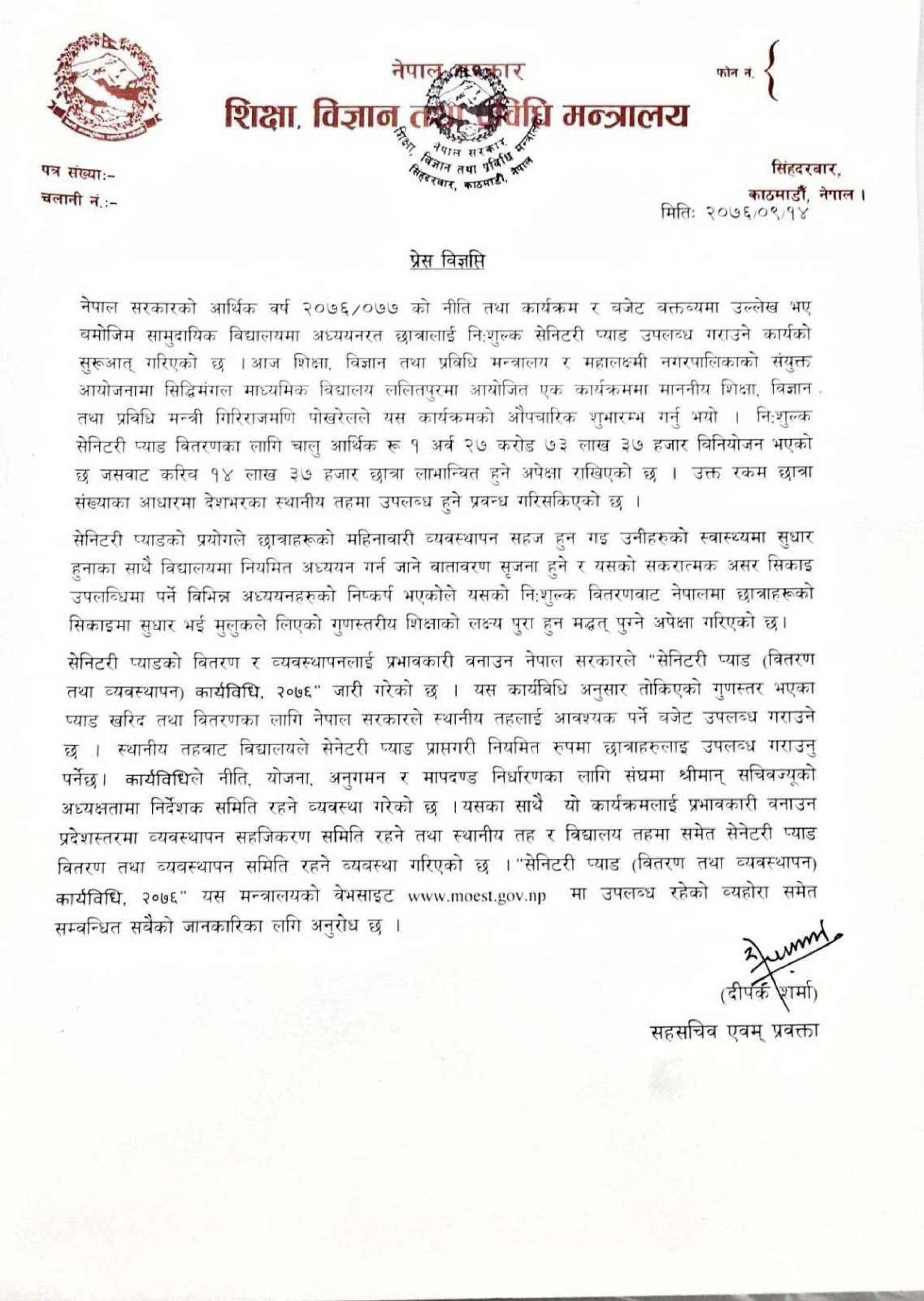 ‘चैत ६ गतेदेखि हुनेगरी तय भएको एसईईको परीक्षा यथावत रुपमा नै सञ्चालन हुनेछ । अतः परीक्षा सारेको वा विद्यालय बन्द गरिएको भन्ने जस्ता गलत सूचनाको भ्रममा नपर्न मन्त्रालय सबैमा अनुरोध गर्दछ’ मन्त्रालयका प्रवक्ता दीपक शर्माद्वारा शुक्रबार जारी प्रेस विज्ञप्तिमा भनिएको छ ।