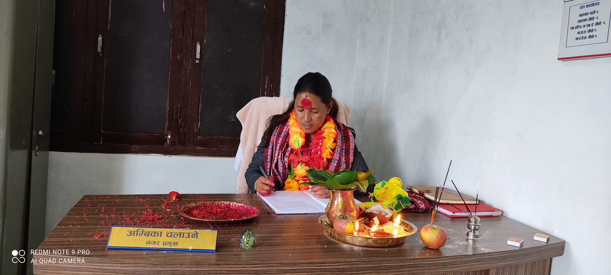 अछामको पहिलो महिला नगर प्रमुख चलाउनेले गरिन् पदभार ग्रहण