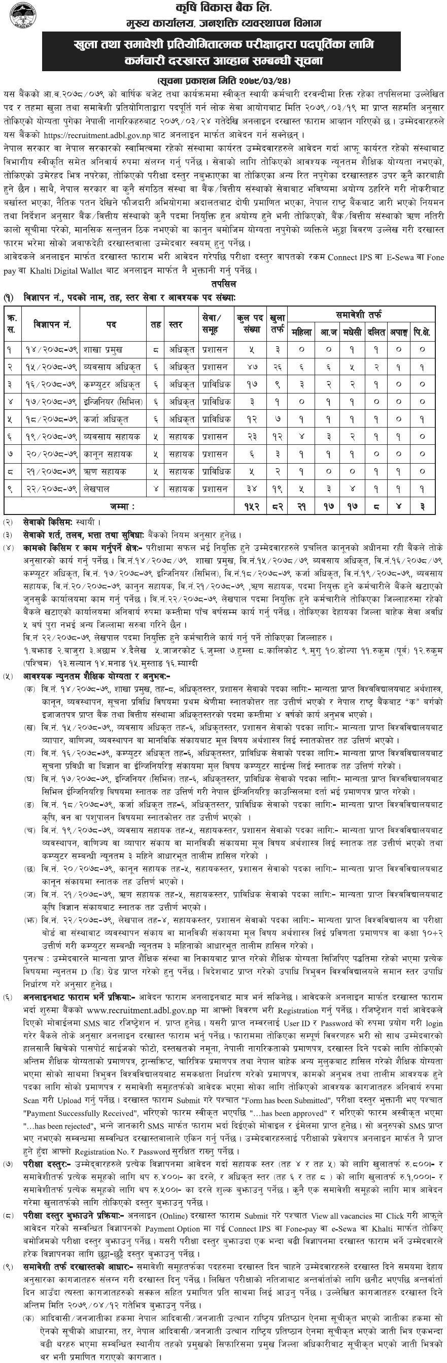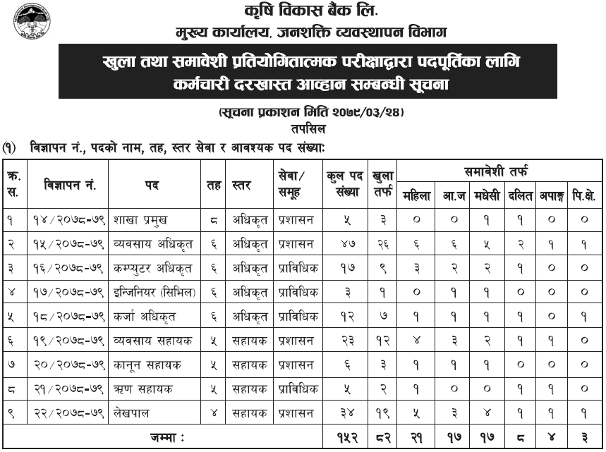 कृषि बिकास बैंकले माग्यो ठुलो संख्यामा कर्मचारी (विज्ञापन सहित) उपहार खबर प्रकाशित मिति : २४ असार २०७९, शुक्रबार ०८:२८July 8, 2022
