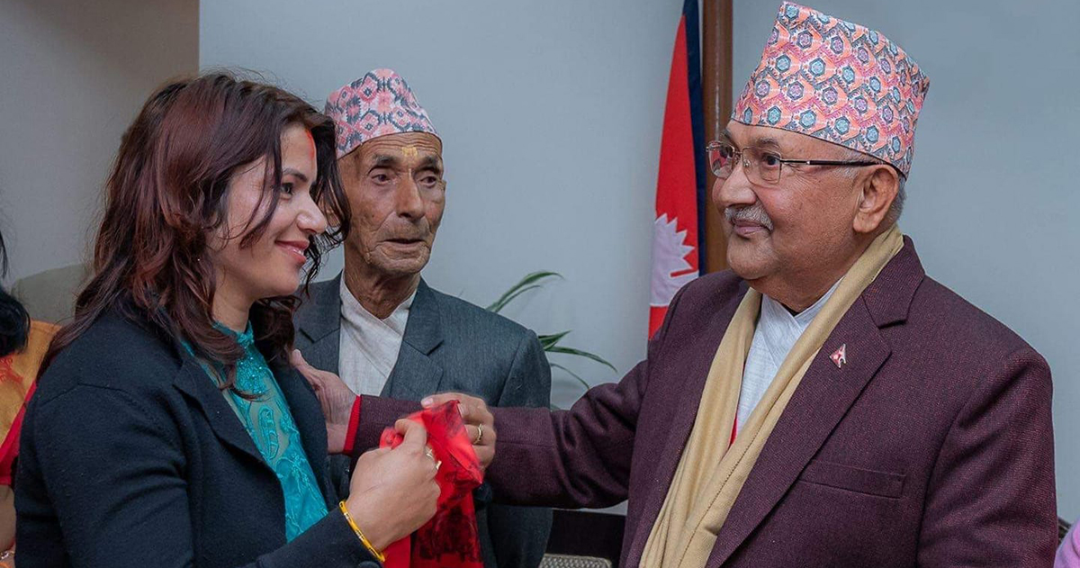 त्यसअघि उनले प्रधानमन्त्री ओलीलाई भेटेकी थिइन् । भेटमा प्रधानमन्त्री ओलीले आफूलाई मिर्गौला दान गरेकोमा धन्यवाद दिएका थिए ।