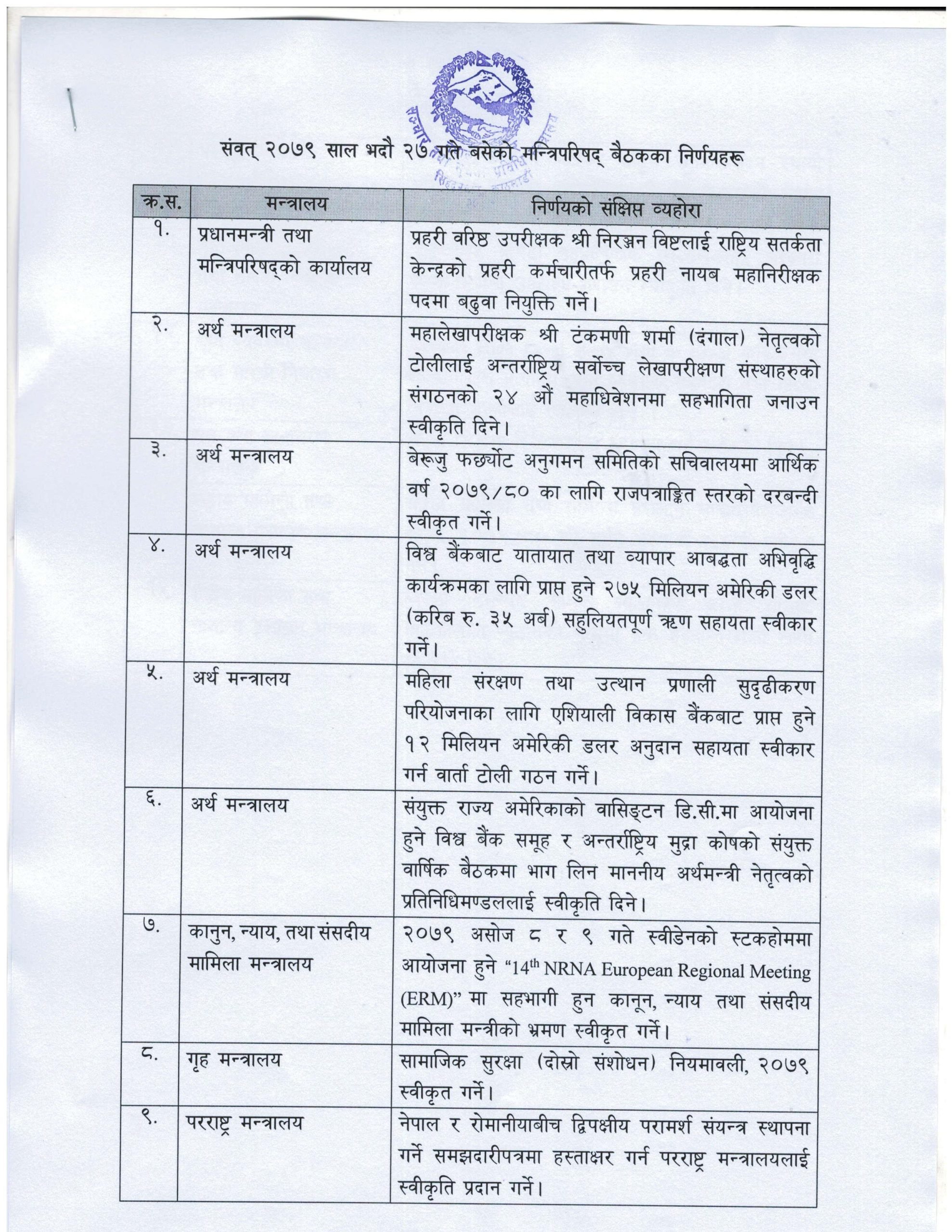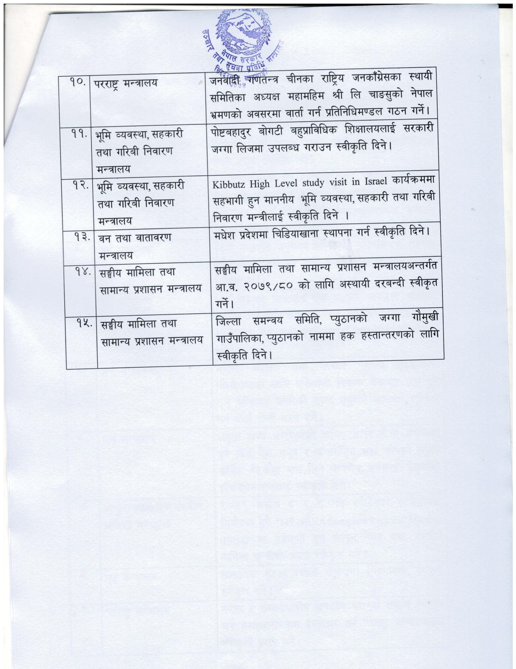 यस्ता छन् मन्त्रिपरिषद्का निर्णयहरु