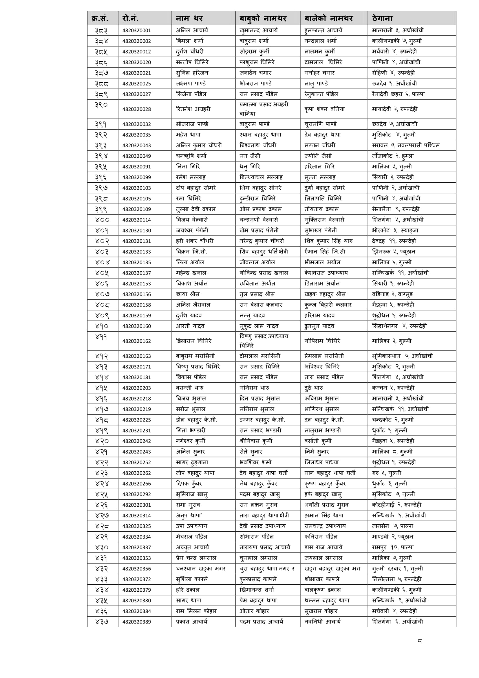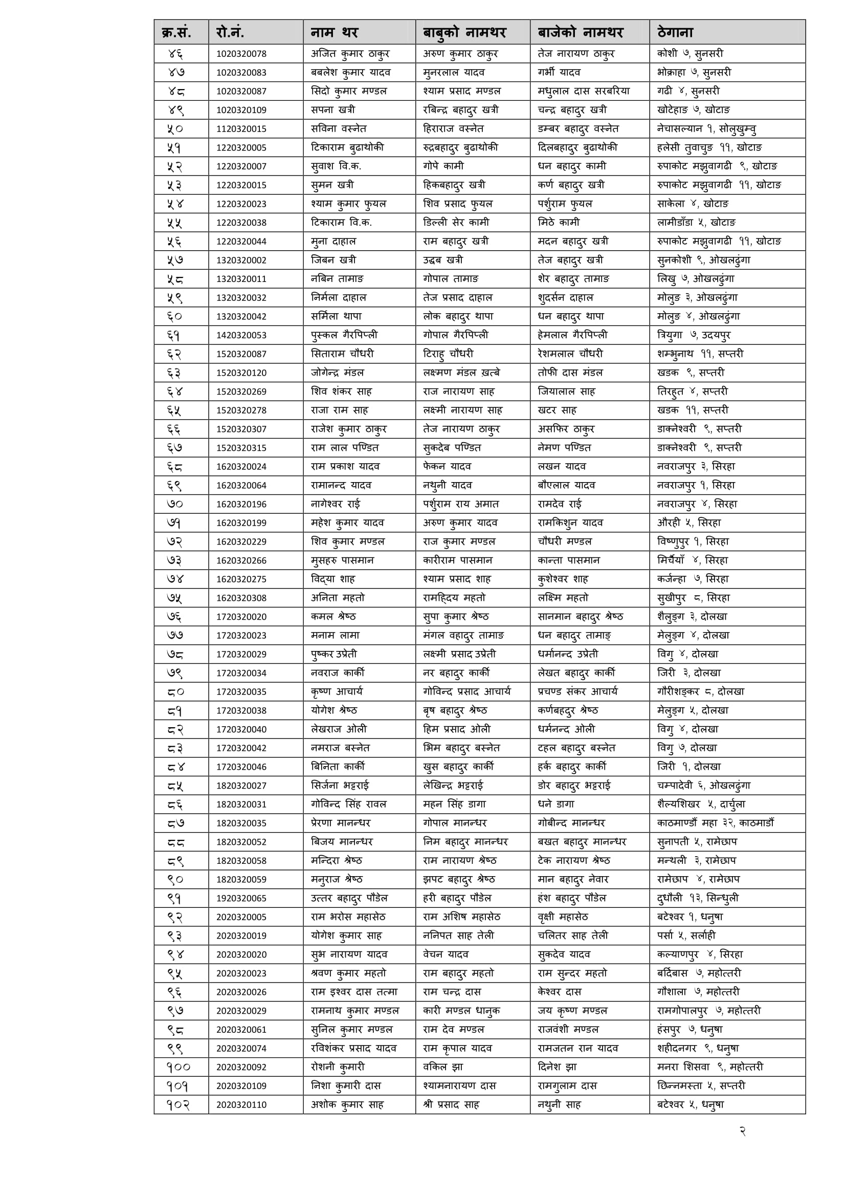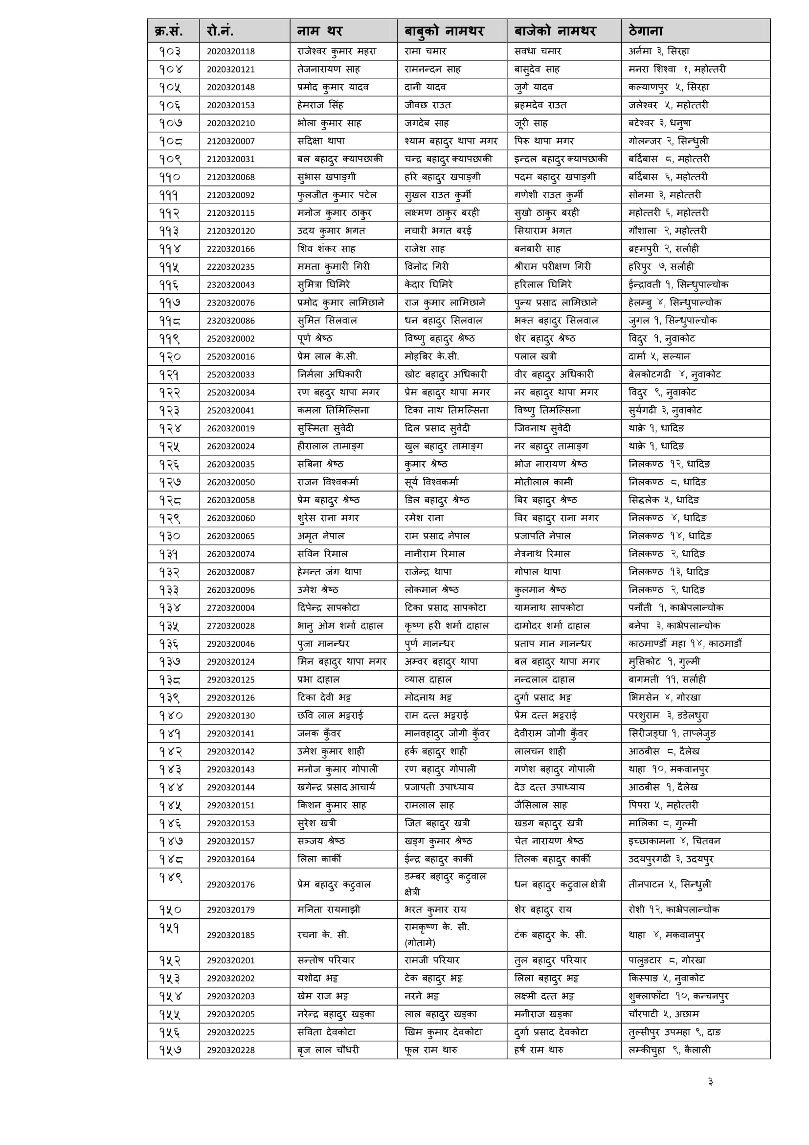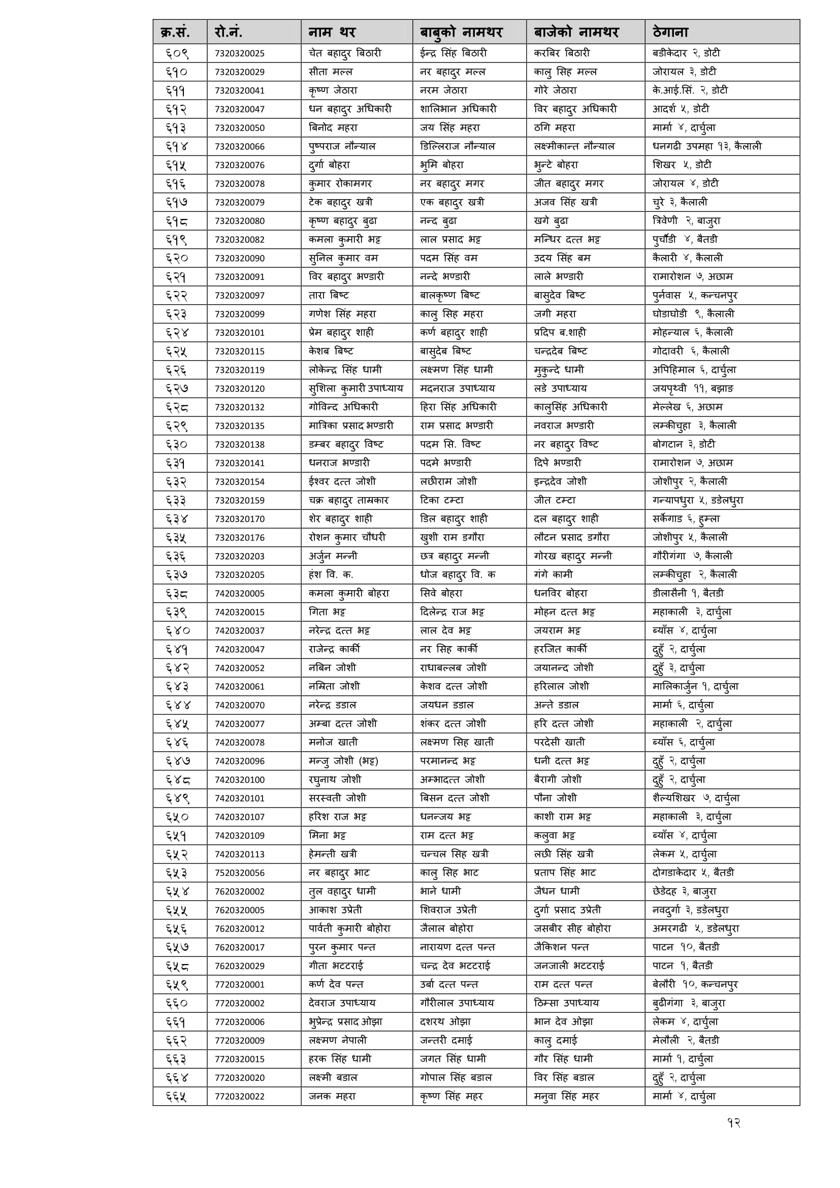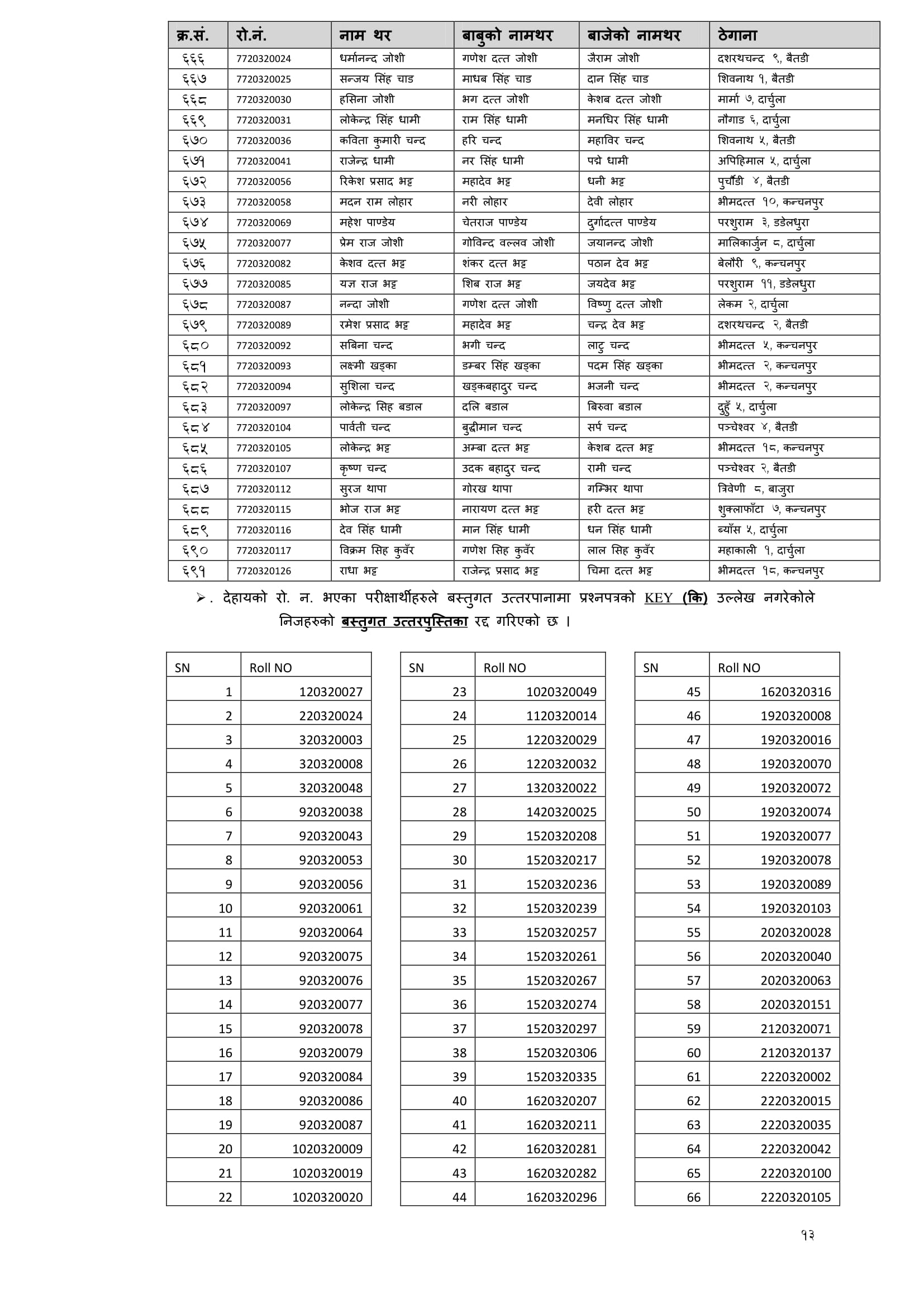 शिक्षक सेवा आयाेगबाट गत आश्विन महिनामा सञ्चालित निम्न माध्यमिक तह गणित बिषयकाे अध्ययन अध्यापन अनुमति पत्रकाे नतिजा सार्वजनिक गरिएकाे छ । न्यूनतम उतीर्णाक ५० ल्याउने सफल उम्मेद्वारलाइ आयाेगले उतीर्ण गरेकाे छ । ती सफल उम्मेद्वारकाे नामावली निम्नानुसार छ ।