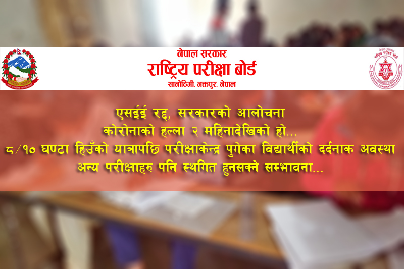 काेरनाकाे त्रास : एसईई परीक्षा स्थगित, अर्काे मिति तय गरिने