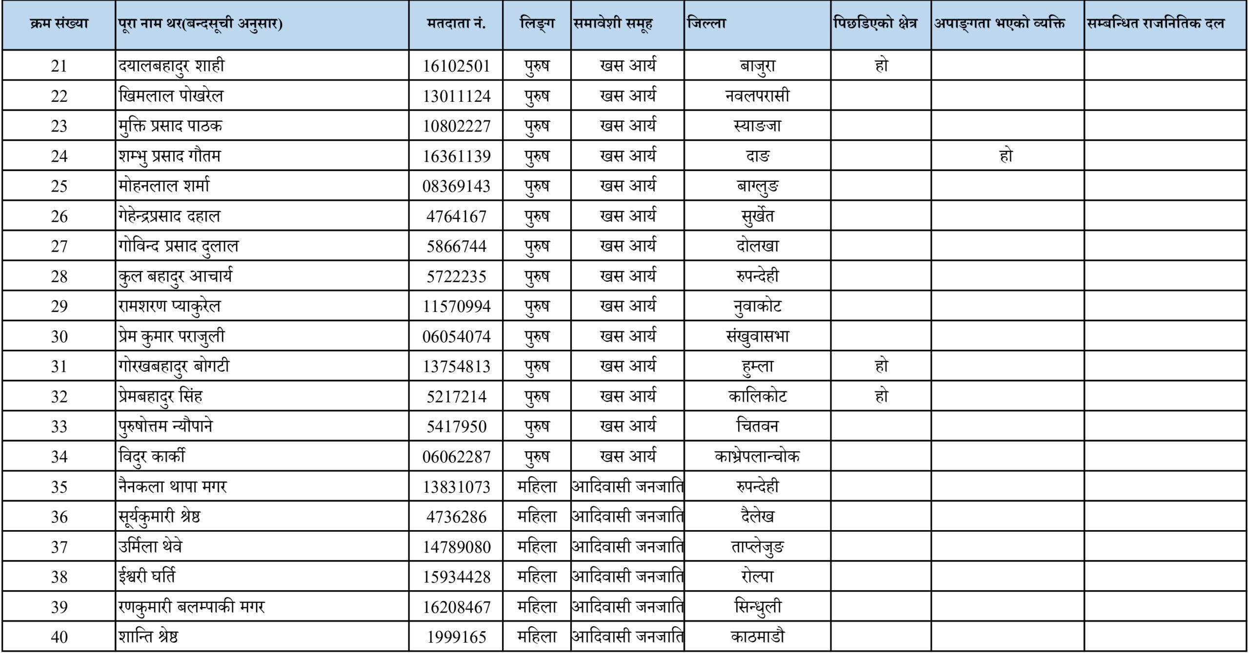 काठमाडौँ – निर्वाचन आयोगले समानुपातिक निर्वाचन प्रणाली अन्तर्गत प्रतिनिधिसभा तर्फका उम्मेदवारको बन्दसूची सार्वजनिक गरेको छ।