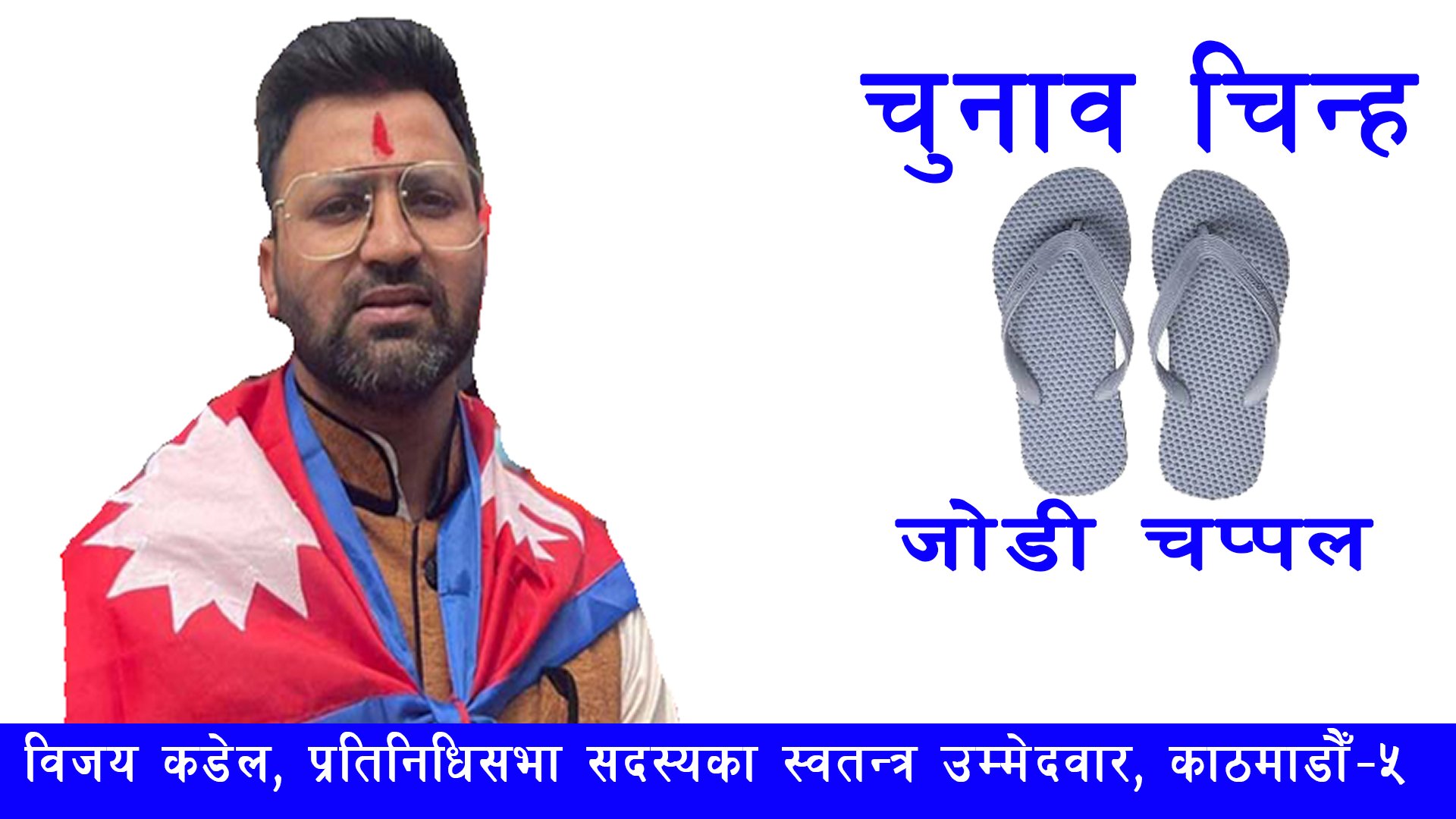 काठमाडौँ – काठमाडौं क्षेत्र नम्बर ५ मा स्वतन्त्र उम्मेदवारी दिएका विजय कँडेलले चुनाव चिन्ह ‘जोर चप्पल’ चिन्ह पाएका छन् ।