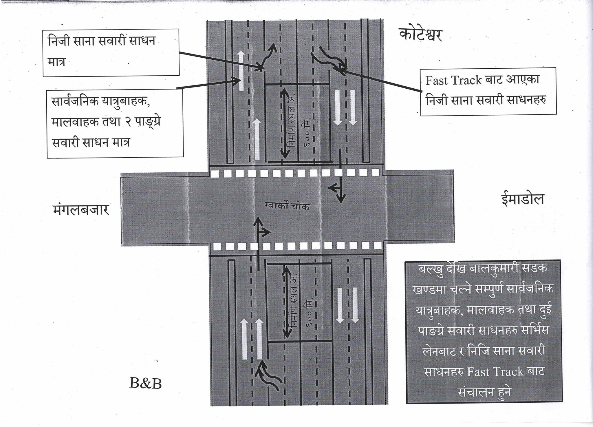 काठमाडौँ – ललितपुरस्थित चक्रपथसँगैको ग्वार्को चोकमा मुलुककै पहिलो फ्लाइओभर (ग्रेट सेप्रेटेड इन्टरसेक्सन) निर्माण सुरु हुँदै छ । सडक विभागका महानिर्देशक अर्जुनजङ्ग थापाले फ्लाइओभर निर्माणका लागि डिजाइनलगायतका आवश्यक सबै पूर्वतयारी भइसकेको बताउँदै शुक्रबारदेखि निर्माण सुरु गरिने जानकारी दिए । अन्तर्राष्ट्रिय मापदण्डअनुसार यस फ्लाइओभरको उचाइ ६ मिटर हुने केन्द्रले जनाएको छ । दुई वर्षभित्र निर्माण सम्पन्न हुने गरी एम/एस आशिष–समानान्तर (जेभी)ले ठेक्का पाएको छ । फ्लाईओभरको विस्तृत् परियोजना प्रतिवेदन (डीपीआर) जियोकम/बीडीए/रेज (संयुक्त)ले तयार गरेको हो ।