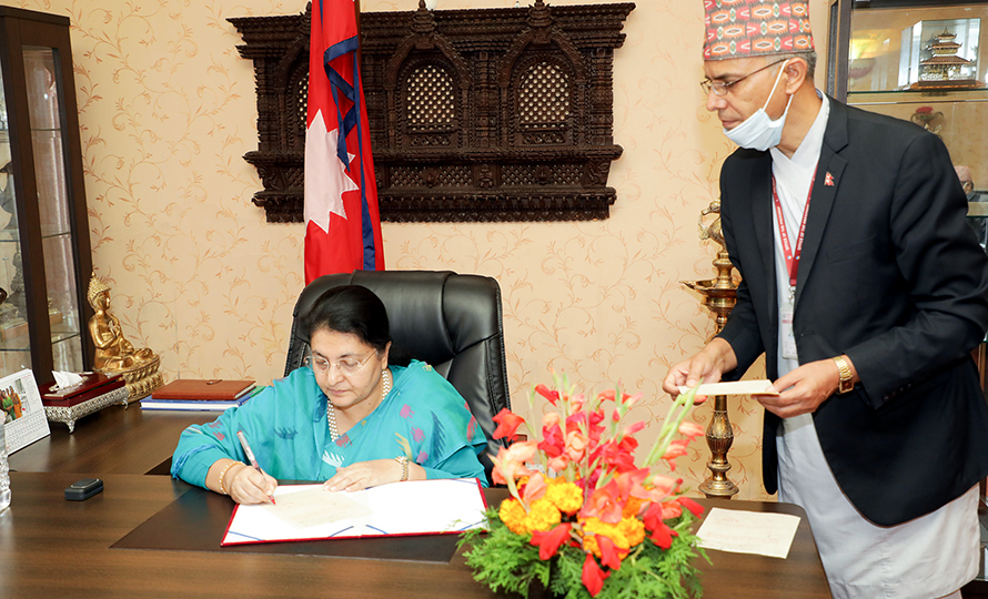 काठमाडौं – सरकारले मुलुकी फौजदारी कार्यविधि संहिता, २०७४ संशोधन गर्न ल्याएको ‘मुलुकी फौजदारी कार्यविधि संहिता (पहिलो संशोधन) अध्यादेश, २०७९’ राष्ट्रपति कार्यालय शीतल निवासमा पुगेर अध्ययन हुँदै छ । गत आइतबार बसेको मन्त्रिपरिषद् बैठकले नेपालको संविधानको धारा ११४ को उपधारा ९१० बमोजिम अध्यादेश’दयगत निणर्य गरी प्रमाणीकरणका लागि सोमबार राष्ट्रपति विद्यादेवी भण्डारीसमक्ष पठाएको थियो । राष्ट्रपति कार्यालयका प्रवक्ता सागर आचार्यले अध्यादेशका विषयमा राष्ट्रपतिले आवश्यक अध्ययन गरिरहेको बताए ।