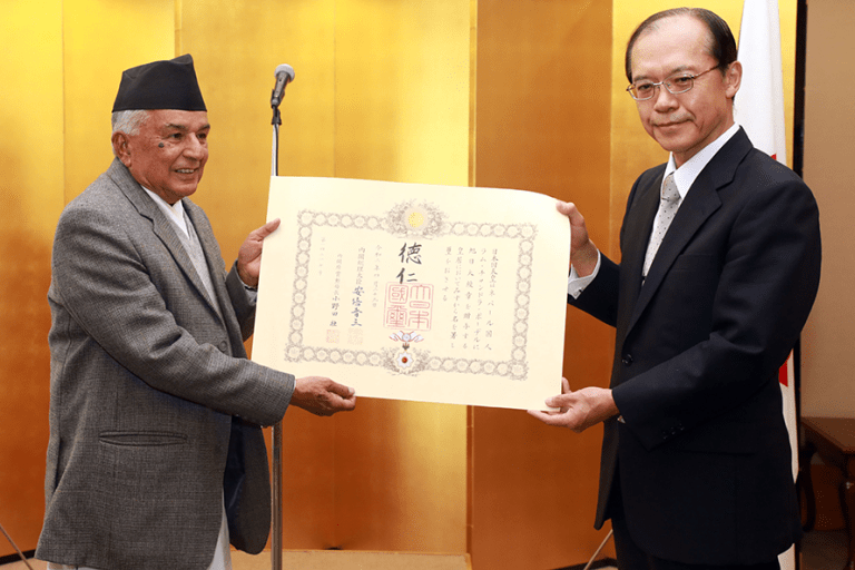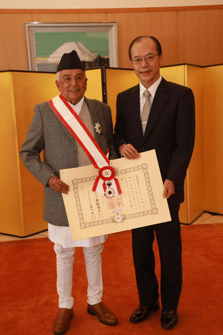 काठमाडौं – नेपाली कांग्रेसका वरिष्ठ नेता रामचन्द्र पौडेललाई जापान सरकारले राजकीय सम्मान प्रदान गरेको छ ।