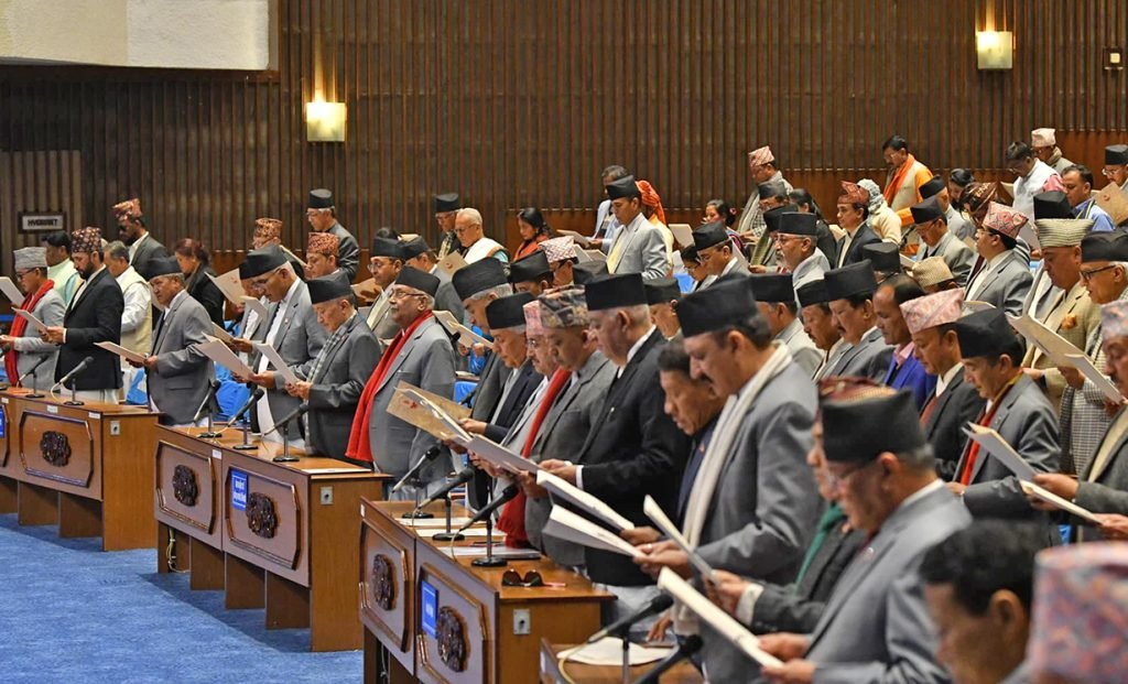 काठमाडौँ – नेकपा एमालेका अध्यक्ष तथा पूर्वप्रधानमन्त्री केपी शर्मा ओली बिहीबार अन्य सांसदहरुजस्तै शपथका लागि सहभागी भए । संसद भवनमा ज्येष्ठ सदस्य पशुपति शमशेर राणाले सबै सदस्यहरूलाई शपथ गराउने कार्यक्रममा ओली भने फरक रुपमा प्रस्तुत भए ।