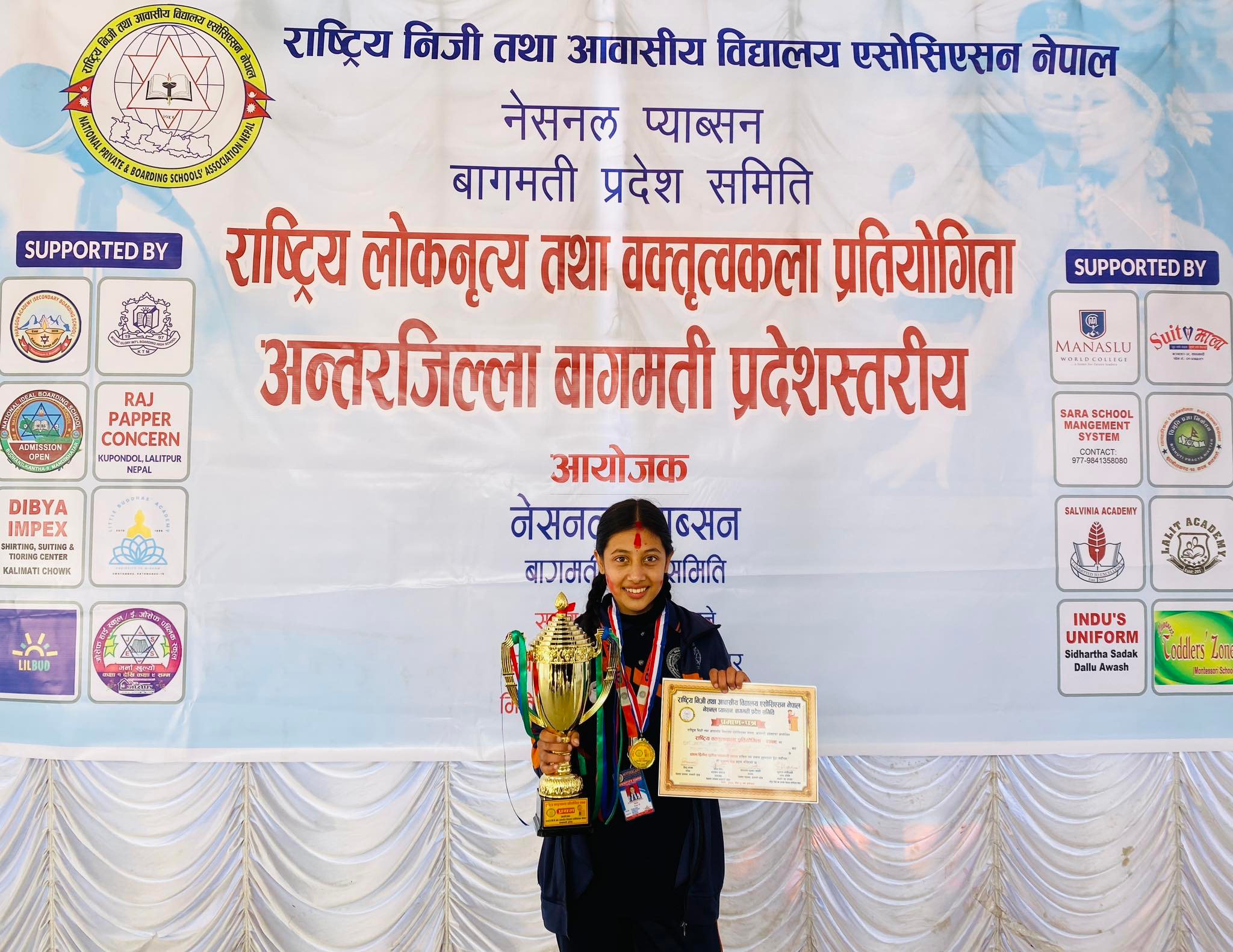 काठमाडौँ – रास्ट्रिय निजी तथा आवासीय बिद्यालय एसोसिएसन नेपाल नेसनल प्याब्सन बागमती प्रदेशद्वारा आयोजित अन्तरजिल्ला प्रदेशस्तरिय वक्तृत्वकला प्रतियोगितामा मदरल्याण्ड स्कुल भक्तपुरकी प्रशंसा कार्की प्रथम स्थान र लोकनृत्य प्रतियोगितामा पनि भक्तपुर कै पारागन एकेडेमी स्कुलको लोकनृत्य समूह प्रथम भइ विजयी भएको छ ।
