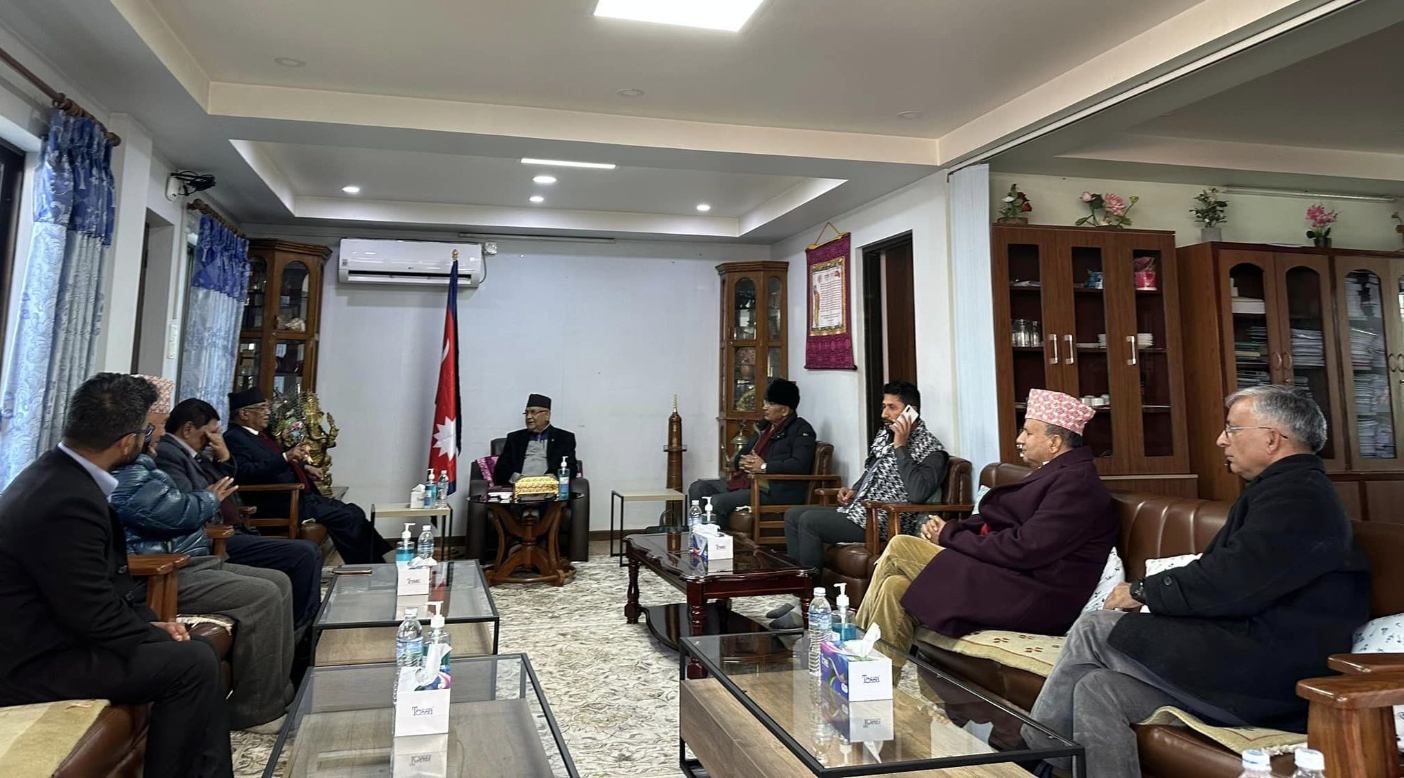 नेकपा एमाले, राष्ट्रिय स्वतन्त्र पार्टी, राप्रपा, जसपा, जनमत पार्टी, नागरिक उन्मुक्ति पार्टीको समर्थनमा माओवादी अध्यक्ष प्रचण्ड आइतबार प्रधानमन्त्री नियुक्त भएका थिए। प्रचण्ड प्रधानमन्त्री बनेपछि सत्ता गठबन्धनको पहिलो बैठक बस्न लागेको हो। नवनियुक्त प्रधानमन्त्री प्रचण्डले आज अपरान्ह ४ बजे शपथ लिने कार्यक्रम छ। सरकारमा कुन दलले कुन मन्त्रालय लिने भन्नेबारेमा सत्ता गठबन्धनमा छलफल हुन लागेको ती नेता बताउँछन्।