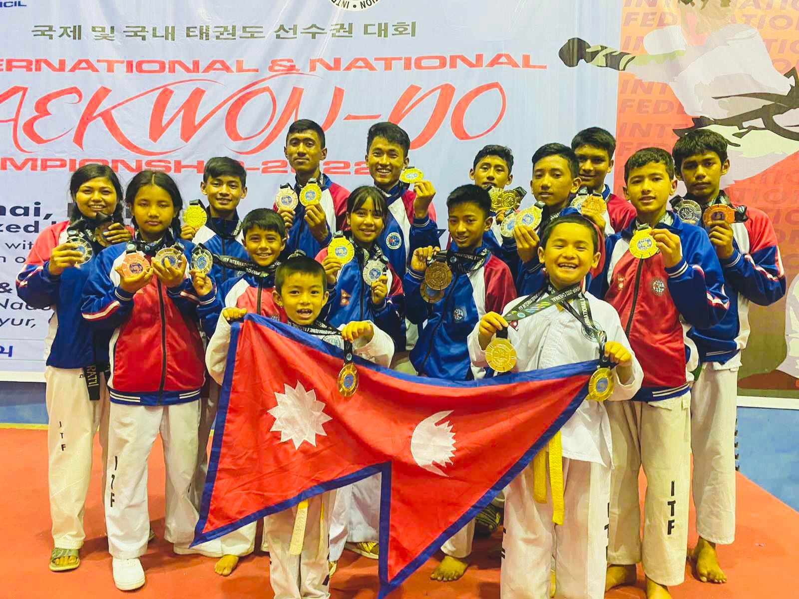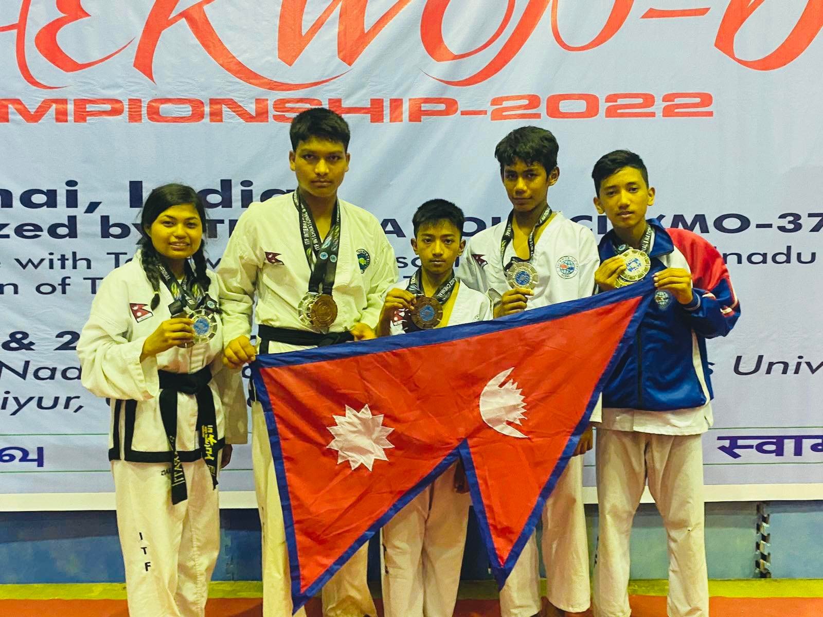उक्त प्रतियोगितामा जयराम (प्रविन) विकले १ गोल्ड र १ सिल्भर मेडल, निकेश भूजेलले १ गोल्ड र १ सिल्भर मेडल, विनोद विकले १ सिल्भर र १ ब्राउन्च मेडल, अर्जुन तामागंले २ ब्राउन्च मेडल र आरती सिगंख्वालले १ सिल्भर र १ ब्राउन्च मेडल जित्न सफल भएका थिए । भारतको चेन्नईस्थित तमिलनाडु फिजिकल एजुकेसन तथा स्पोर्ट्स युनिभर्सिटीमा सम्पन्न अन्तर्राष्ट्रिय तेक्वान्दो आईटीएफ प्रतियोगितामा नेपालले १२ स्वर्ण, ९ रजत र ४ कांस्य जितेका छन् । प्रतियोगितामा नेपालबाट सहभागी महिला ३ र पुरुष १२ खेलाडीले पदक जितेका थिए ।