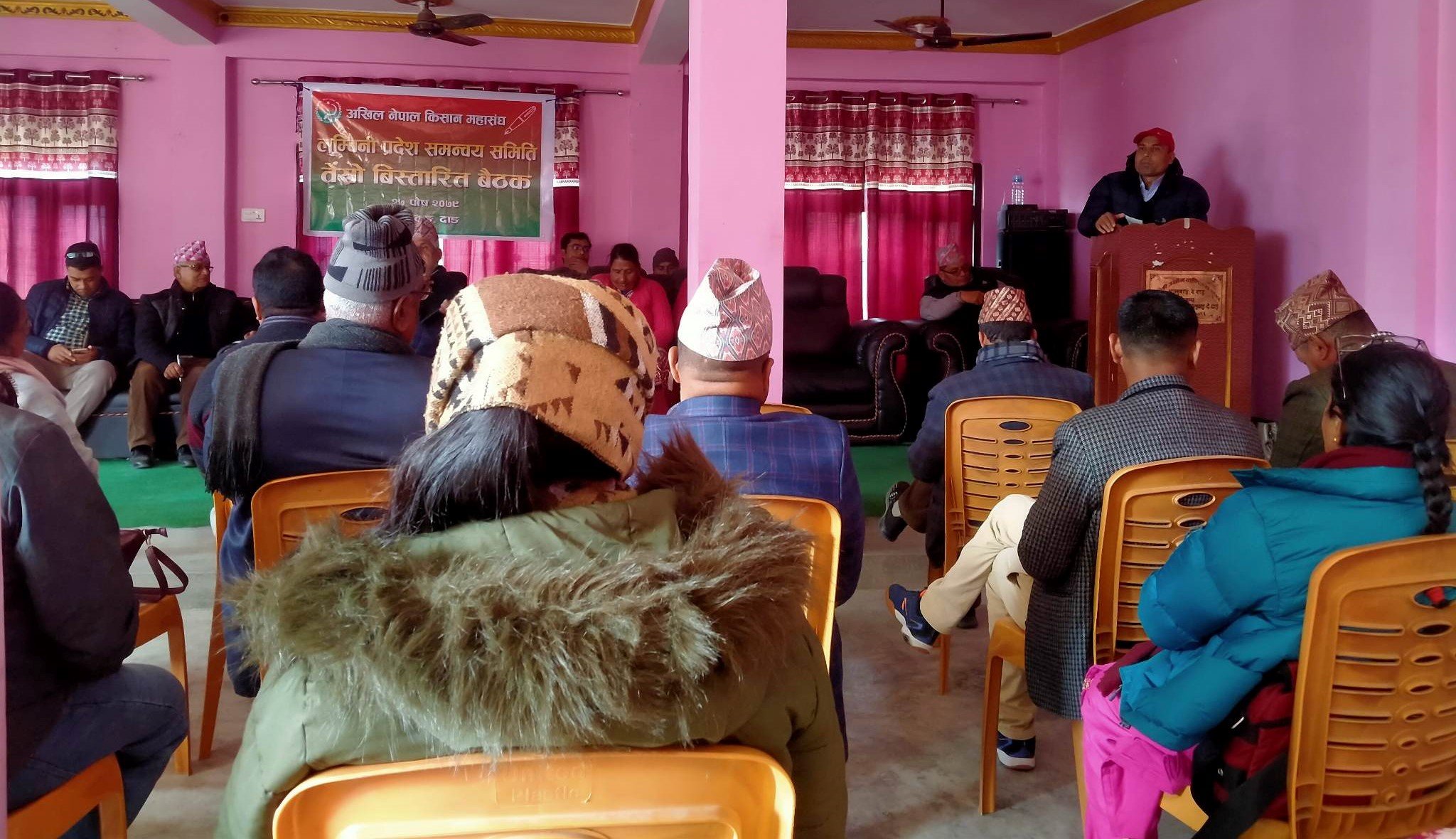 लुम्बिनी – अखिल नेपाल किसान महासंघ लुम्बिनी प्रदेश समन्वय समितिको तेस्रो विस्तारित बैठक दाङकाे भालुवाङमा आयोजना गरि बुधबार सम्पन्न गरिएको छ । महासंघको राष्ट्रिय समितिकाे अध्यक्ष बलराम बाँस्कोटाकाे प्रमुख आतिथ्यतामा आयोजित बैठकमा प्रदेश भित्रका १२ वटै जिल्ला समन्वय समितिका प्रमुख तथा प्रतिनिधिहरुले आआफ्नो जिल्ला महासंघको संगठनात्मक अवस्था, गरिएका गतिविधि, आगामी कार्ययोजना, स्थानीय किसानकाे समस्या तथा माग, किसान संघर्षका कार्यक्रम लगायतका विषयमा रिपोर्टिङ गरिएको थियो ।