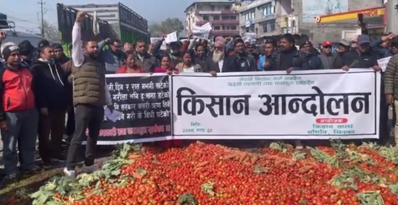 आफूले दुःख झेलेर उत्पादन गरेका गोलभेँडा, फर्सी, बन्दा, काउली, घिउसिमीलगायतका तरकारी बिक्री नभएपछि नारायणगढको पुल्चोकको सडकमै फालेर सरकारको ध्यानाकर्षण गराएको किसानहरुले बताएका छन् ।