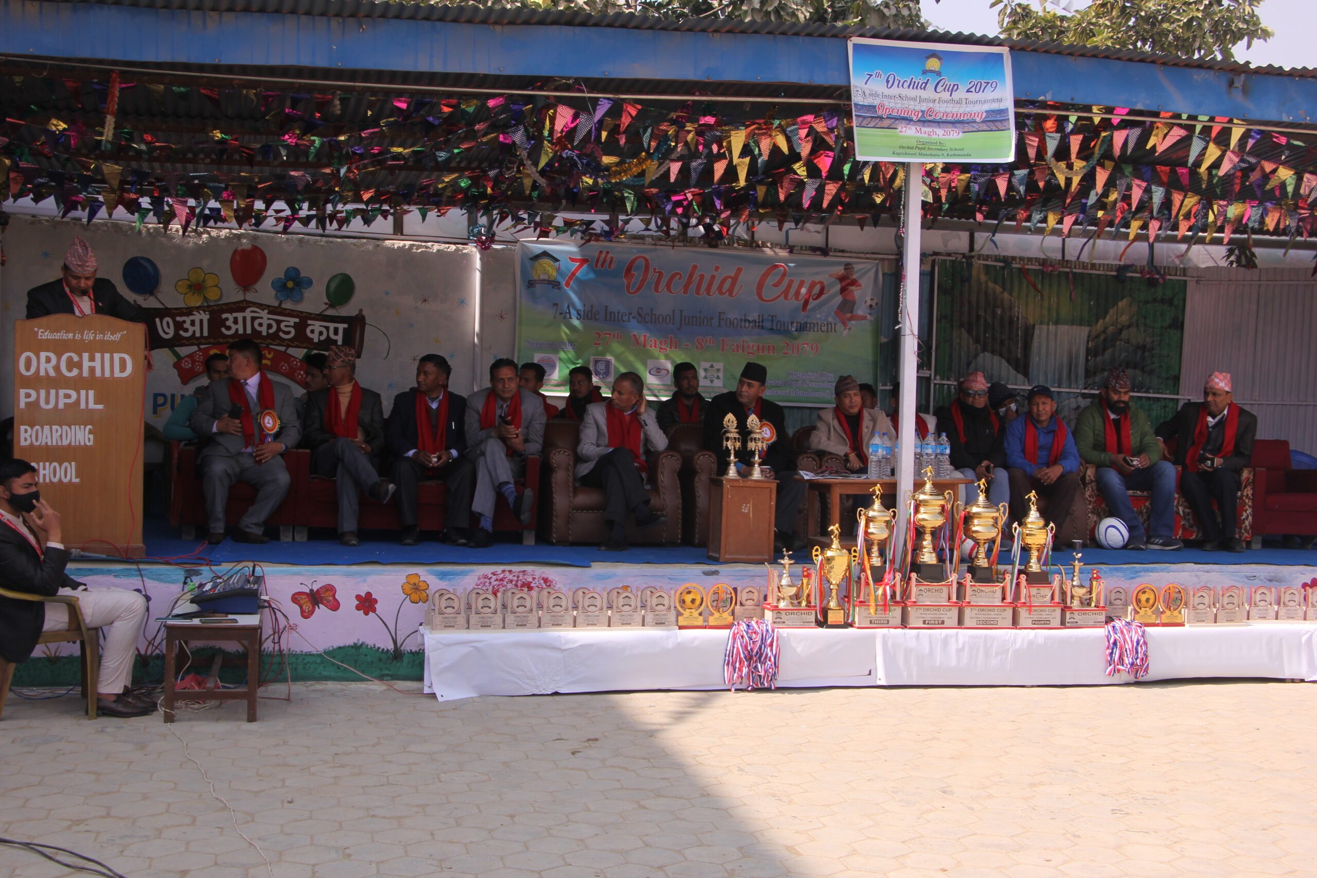 उद्घाटन समारोहको उद्घोष विद्यालयका संयोजक नरेन्द्रप्रसाद पाण्ड्यले गर्नुभएको छ । आज उद्घाटन समारोहमा तीन खेल हुने भएकाछन् । जसमा पहिलो खेल अर्किड स्कुल ‘ए’ र गोठाटार स्कुलबीच हुनेछ भने दोस्रो खेल पनाङ्क प्याराडाइज स्कुल र भीमेश्वर स्कुलबीच हुनेछ । यसैगरी तेस्रो खेल गोल्डेन वड स्कुल र सनराईज स्कुल बीच हुनेछ ।