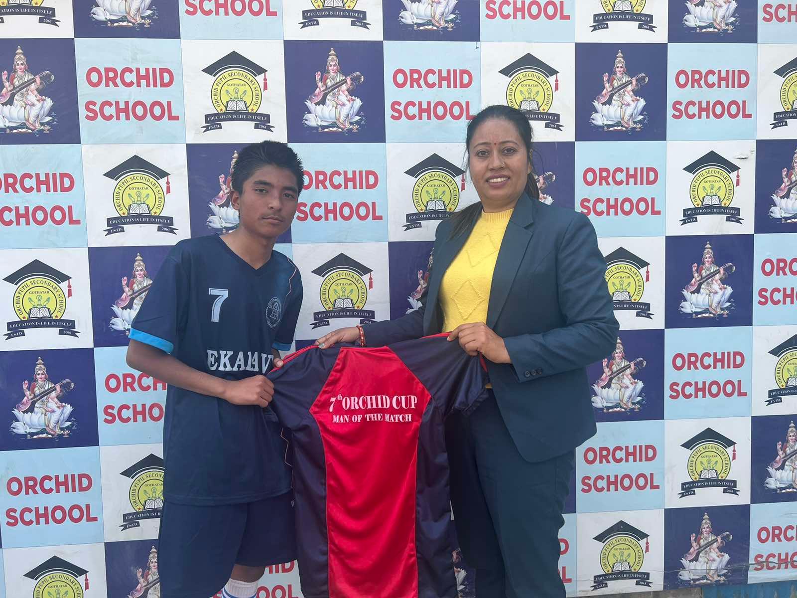 काठमाडौँ – काठमाडौँको काँडाघारीमा अवस्थित अर्किड स्कुलले संचालन गरेको अर्किड कप अन्तरगत आज सातौ दिन ४ वटा खेलहरु सम्पन्न भएका छन् । आज भएको पहिलो खेलमा मनकामना स्कुलले एकलब्यलाई २–१ गोलले पछि पार्दै क्वाटर फाइनलमा प्रवेश गरेको छ । मनकामनाका सुनिल डंगोल र सुमन सुनवारले समान १–१ गोल गर्दै एकलब्यका विजय श्रेष्ठले प्रत्युत्तर गोल फर्काएका थिए । म्यानअफ द म्याच पनि एकलब्यका विजय श्रेष्ठ नै भएका छन् । आजै भएको दोस्रो खेलमा शुन्य गोलको बराबरीमा हाइलीले गोल्डेन वडलाई ५–४ गोलले पछि पार्यो । गोल्डेन वडका रितिक खड्का म्यान अफ द म्याच भए । आजकै तेस्रो खेलमा साँग्रीलाले सीसीएसलाई ३–१ गोल अन्तरले पराजित गरेको छ । साँग्रीलाका गम्भिर तामाङको ह्याट्रिक गोल हुँदा सीसीएसका रिदिक खड्काले प्रत्युत्तर एक गोल गरेका थिए । म्यान अफ द म्याच भने सीसीएसकै रिदिक खड्का चुनिएका छन् ।