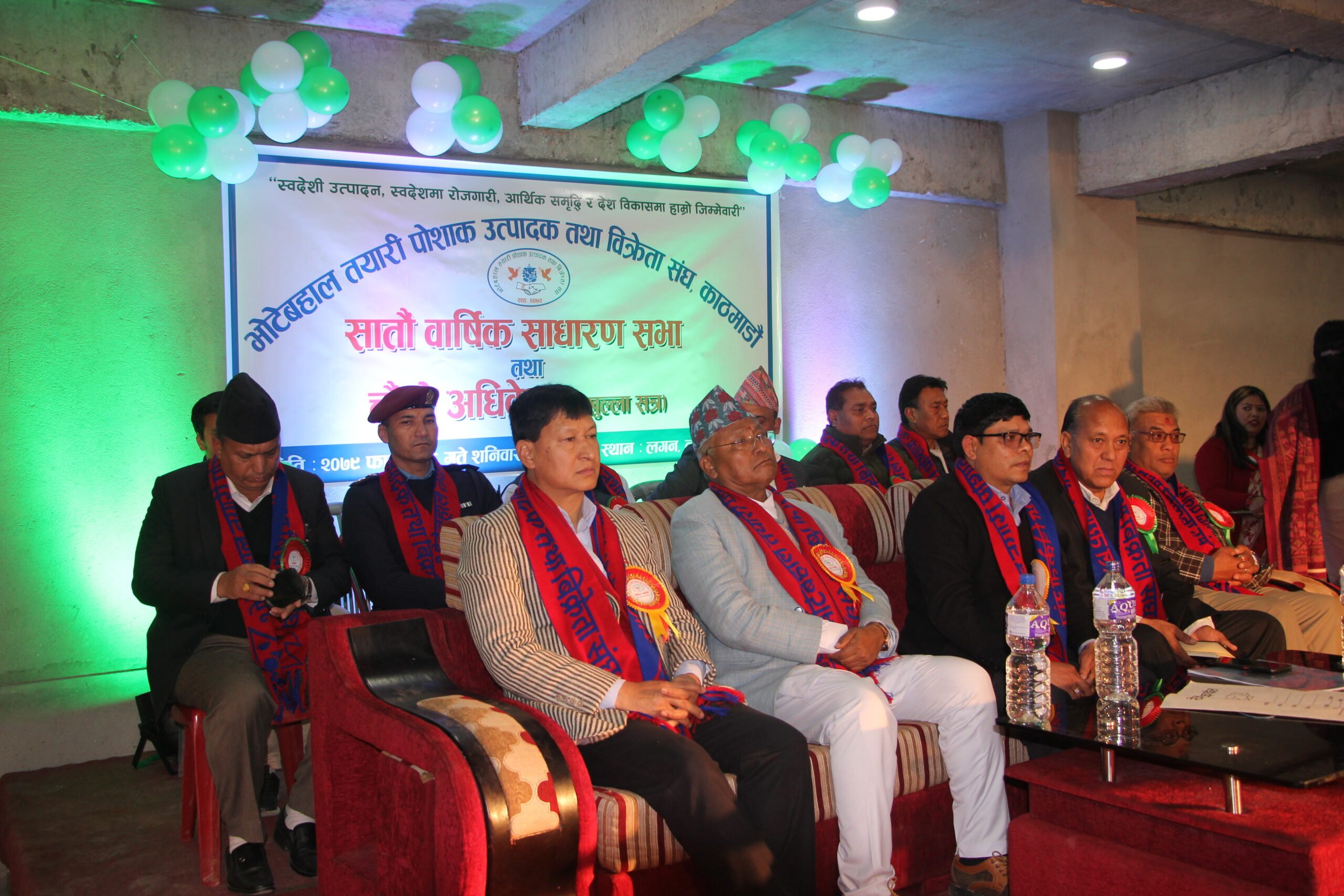 काठमाडौँ – भोटेबहाल तयारी पोसाक उत्पादक तथा विक्रेता संघ, काठमाडौँको सातौँ बार्षिक साधारण सभा तथा चौथो अधिबेशन भव्यताका साथ सम्पन्न भएको छ । संघका अध्यक्ष चन्द्रबहादुर लामिछानेको सभापतित्वमा शनिवार काठमाडौँमा आयोजित उक्त औपचारिक कार्यक्रमको उद्घाटन समारोहमा प्रमुख अतिथिको रुपमा पूर्व मन्त्री तथा प्रतिनिधि सभा सदस्य कृष्णगोपाल श्रेष्ठ रहनुभएको थियो । यसैगरी विशिष्ट अतिथि काठमाडौँ महानगरपालिकाका पूर्व मेयर विद्यासुन्दर शाक्य, नेपाल राष्टिय व्यववसायी महासंघका अध्यक्ष कुमार कार्की रहनुभएको थियो । यसैगरी अतिथिमा काठमाडौँ महानगरपालिकाका वडा अध्यक्ष चुडामणी बर्जाचार्य, २२ नम्बरका अध्यक्ष चिनिकाजी महर्जन रहनुभएको थियो । उद्योग वाणिज्य तथा आपूर्ति मन्त्रालय अन्र्तगत बजार तथा निकासी प्रबद्र्धन केन्द्रका उपनिर्देशक राजेनद्रमान श्रेष्ठ लगायत संघमा आवद्ध व्यवसायी कार्यक्रममा सहभागी भएका थिए ।