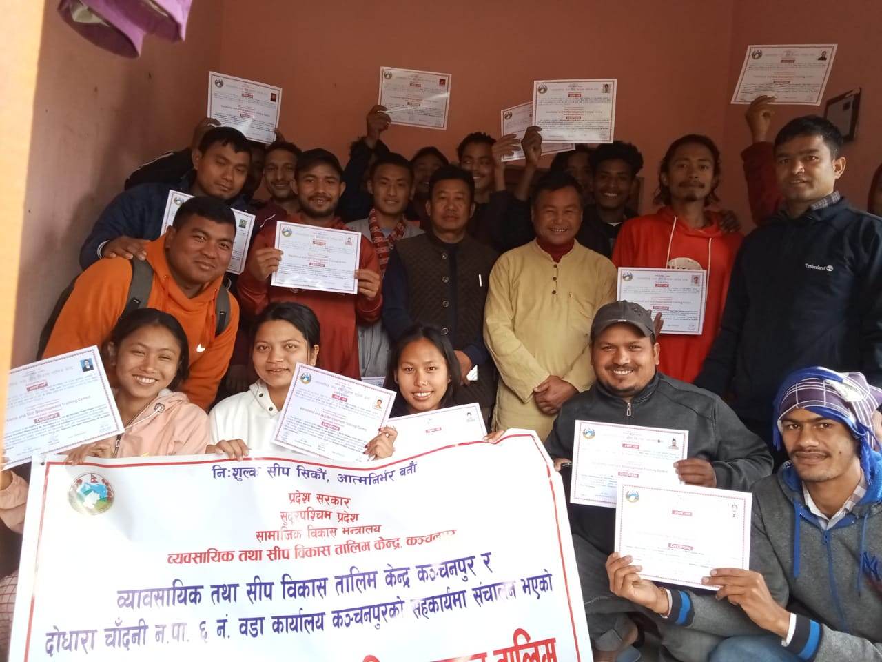 कञ्चनपुको दोधारा चाँदनी नगरपालिका वडा नंम्वर ६ मा बुधवार तिन महिने विद्युत जडान तालिम सम्पन्न भएको छ ।