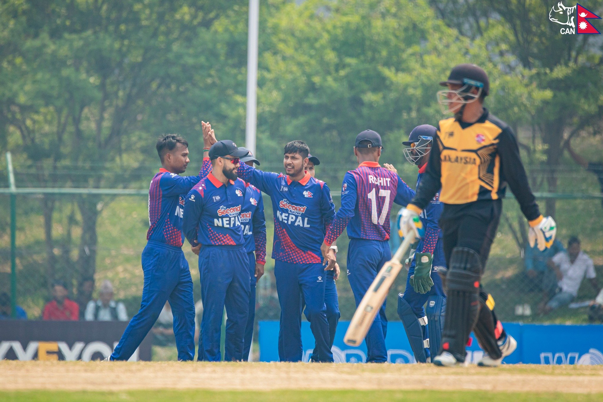 त्रिवि क्रिकेट मैदान कीर्तिपुरमा भएको खेलमा मलेसियाले कप्तान अहमद फैज र विरन्दीप सिंहले शतकीय साझेदारी गरेपछि मलेसियाले निर्धारित ५० ओभरमा ९ विकेट गुमाएर २३५ रन बनाएको हो । नेपालका लागि सोमपाल कामी र सन्दीप लामिछानेले ३–३ विकेट लिए ।