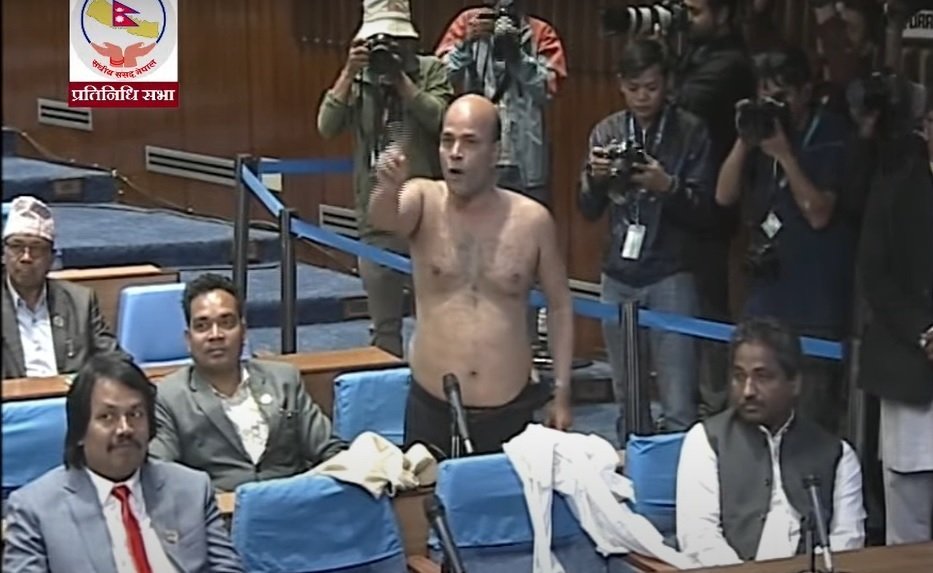 बैठकमा सांसद सिंहले आकस्मिक समय माग गरेका थिए । सभामुखले समय नदिएपछि त्यसको विरोध जनाएका हुन् । संसद बैठकमा सांसद अर्धनग्न भएपछि सभामुख देवराज घिमिरेले संसदीय मर्यादाको ख्याल गर्न आग्रह गरेका छन् ।