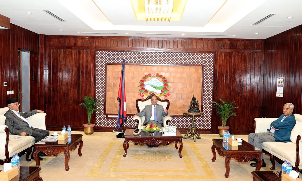 काठमाडौँ – बालुवाटारमा प्रधानमन्त्री पुष्पकमल दाहाल ‘प्रचण्ड’सहित प्रमुख दलका शीर्ष नेताहरूको बैठक जारी छ। प्रधानमन्त्री प्रचण्ड, कांग्रेस सभापति शेरबहादुर देउवा, नेकपा एमालेका अध्यक्ष केपी शर्मा ओलीको छलफल चलिरहँदा बैठकमा प्रमुख पार्टीका संसदीय दलका उपनेता, सचेतक पनि थपिका छन्।