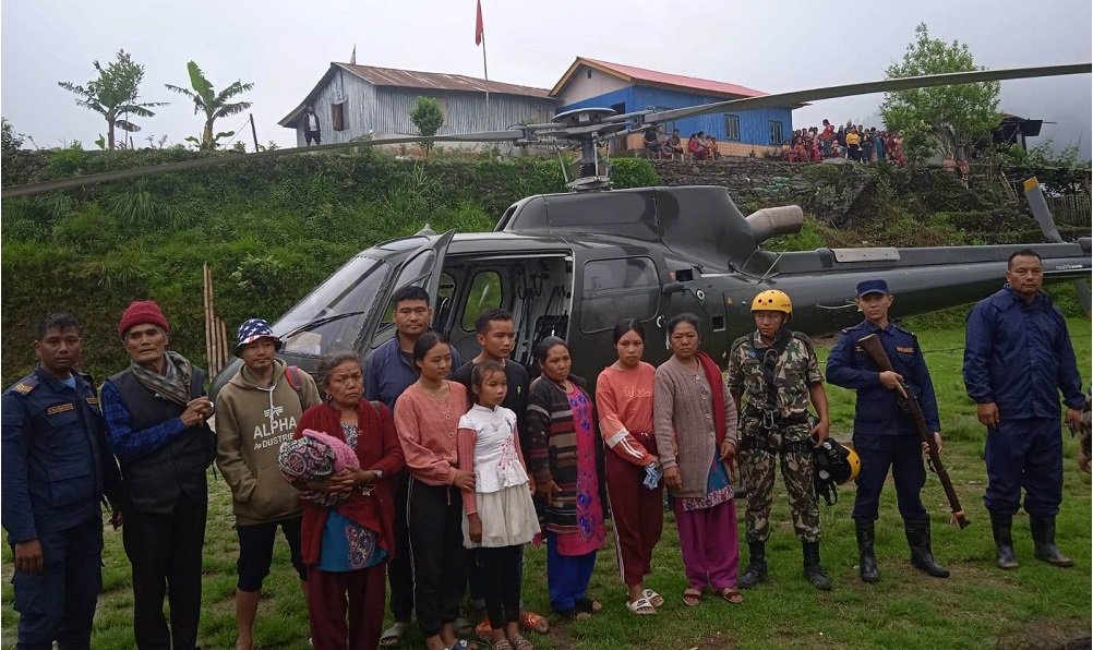 अविरल वर्षाका कारण खोलामा आएको बाढीपहिरो जोखिमका कारण जिल्लाको याङवरक –१ फेदिमा फसेका १२ जनाको नेपाली सेनाको हेलिकोप्टरमार्फत उद्धार गरिएको छ ।