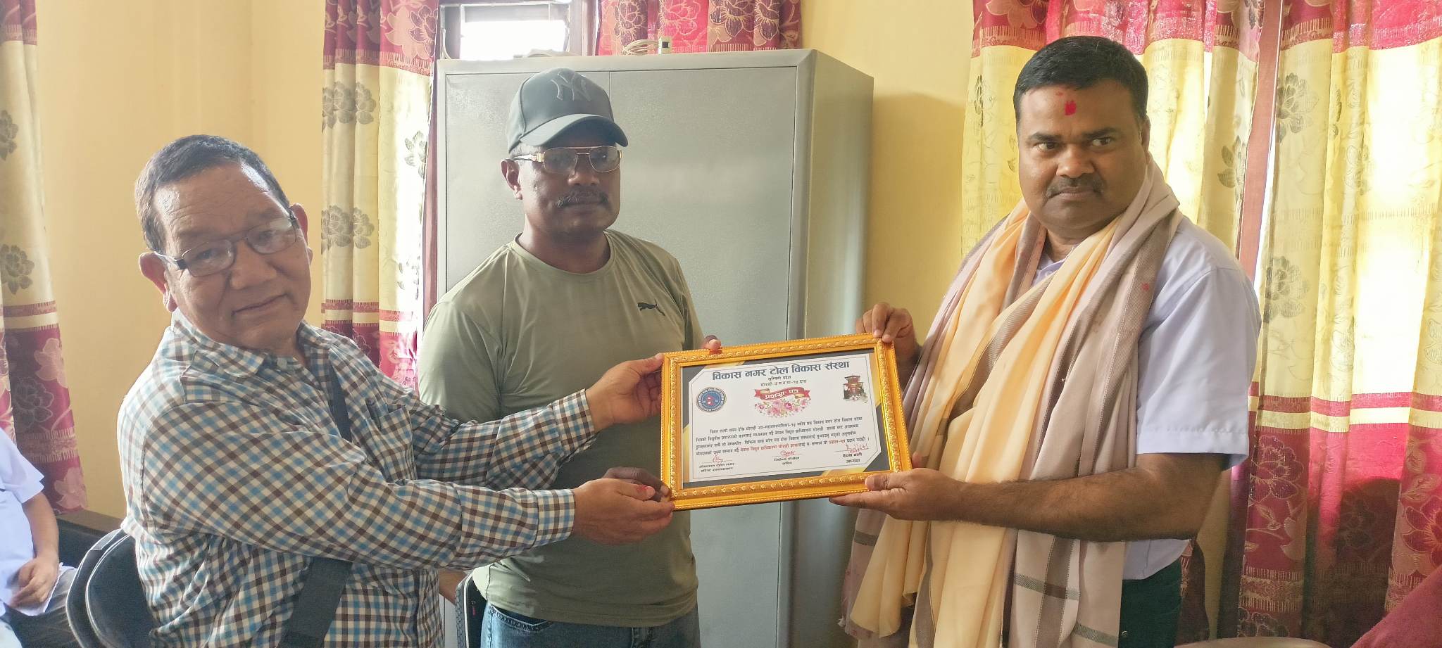 सोहि अवसर पारेर विकासनगर टोलले टोलका अध्यक्ष तथा समाजसेवि बेचन वलीको नेतृक्त्वमा बरीष्ट उपाध्यक्ष खुशलराम पुन र संस्थापक अध्यक्ष को उपस्थितिमा बिद्युत प्राधिकरण शाखामै गएर शाखाका प्रमुख मिथिलेस कुमार गोहिवारलाई टिका तथा खादा र प्रशंसा पत्रले सम्मान गरेको हो । शाखा प्रमुख गोहिवारले बिद्युत प्राधिकरण घोराहि शाखाको उच्च मुल्याङ्कन गरी सम्मान गरेको भन्दै विकास नगर टोल बिकास संस्था प्रति आभार प्रकट गर्नुभएको थियो ।