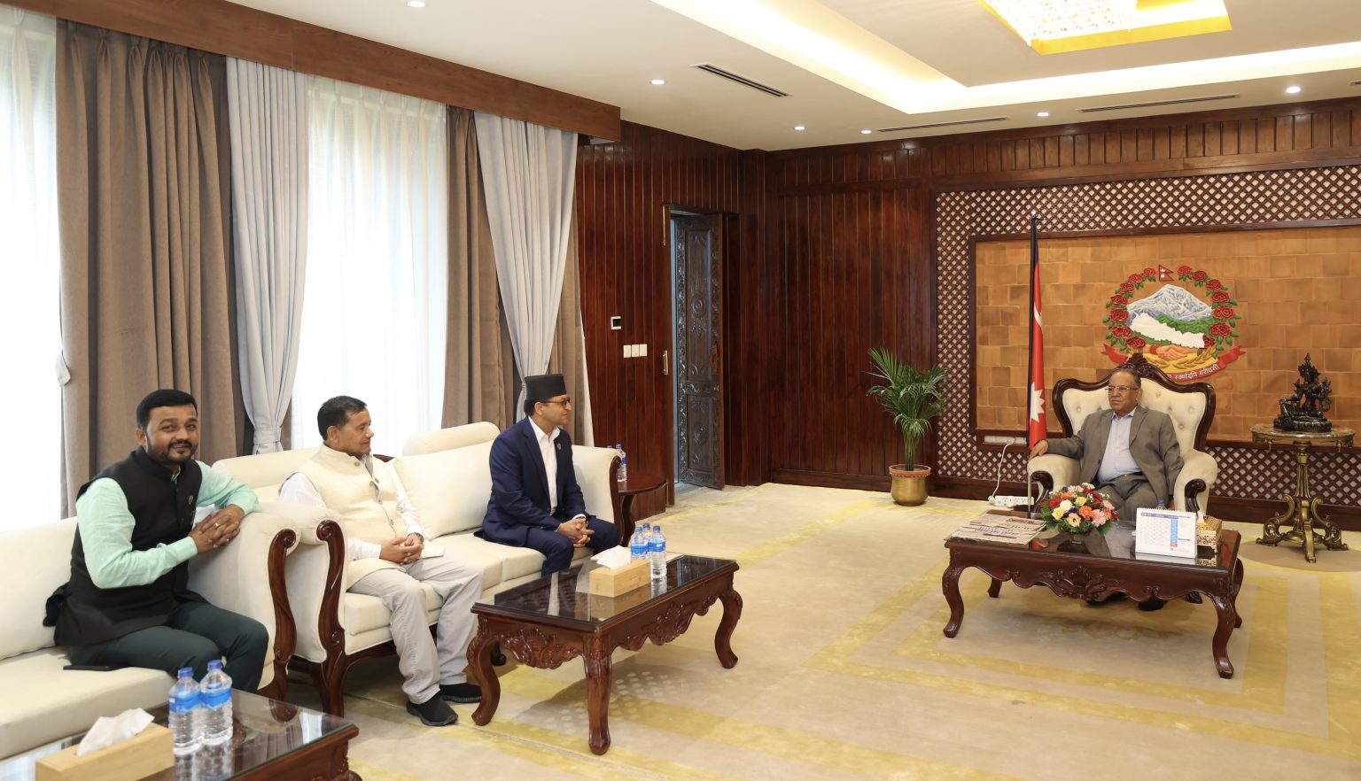 काठमाडौं– प्रधानमन्त्री पुष्पकमल दाहाल ‘प्रचण्ड’सँग राष्ट्रियसभाका अध्यक्ष गणेशप्रसाद तिमिल्सिनाले प्रधानमन्त्री निवास बालुवाटारमा आज बिहान भेटवार्ता गर्नुभएको छ ।