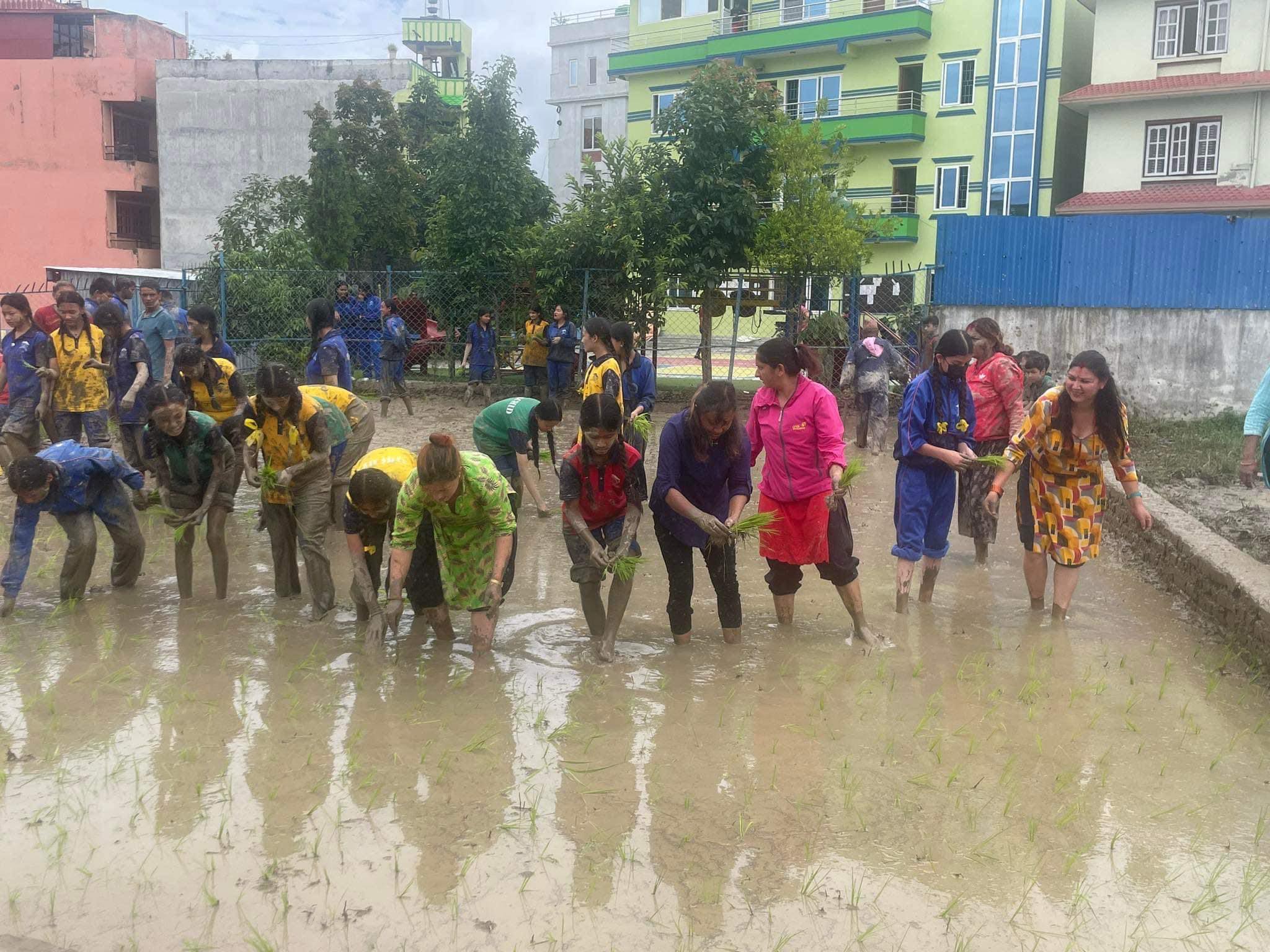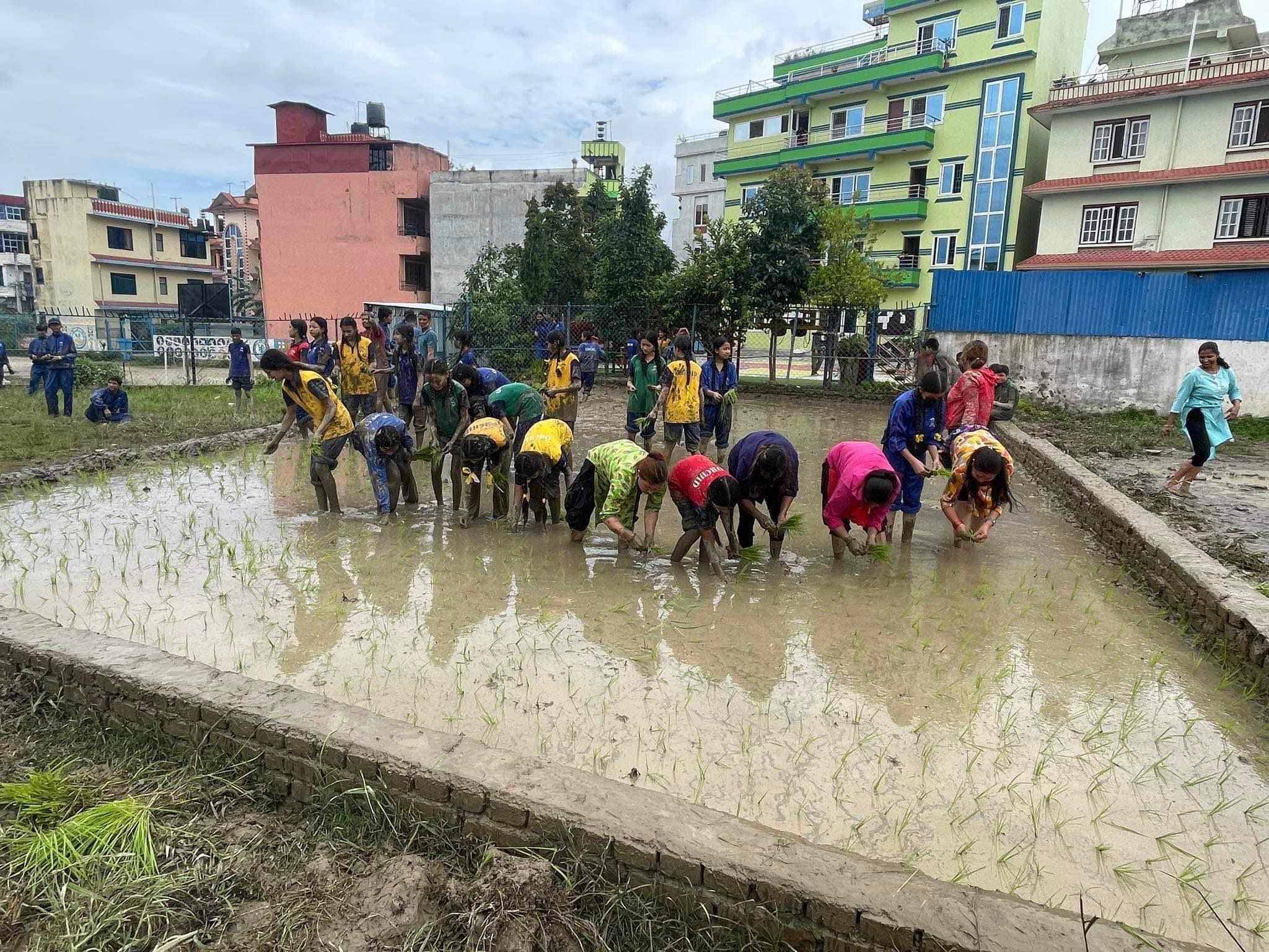 काठमाडौं – ठूलो समूहमा साना बालबालिका, केटाकेटी, कोही स्कुल ड्रेसमा, कोही खेलकुद कार्यक्रममा लगाउने हाउस ड्रेसमा र कोही साधारण कपडामा जब हिलाम्य खेतमा धान रोप्दै र धानको बीउको मुठा बोक्दै गरेको देखिन्छ । यो दृश्य हो काठमाडौँेको कागेश्वरी मनोहरा नगरपालिकाको गोठाटारमा रहेको अर्किड प्युपल सेकेण्डरी स्कुलले मनाएको राष्ट्रिय धान दिवसको तस्बिरहरु ।