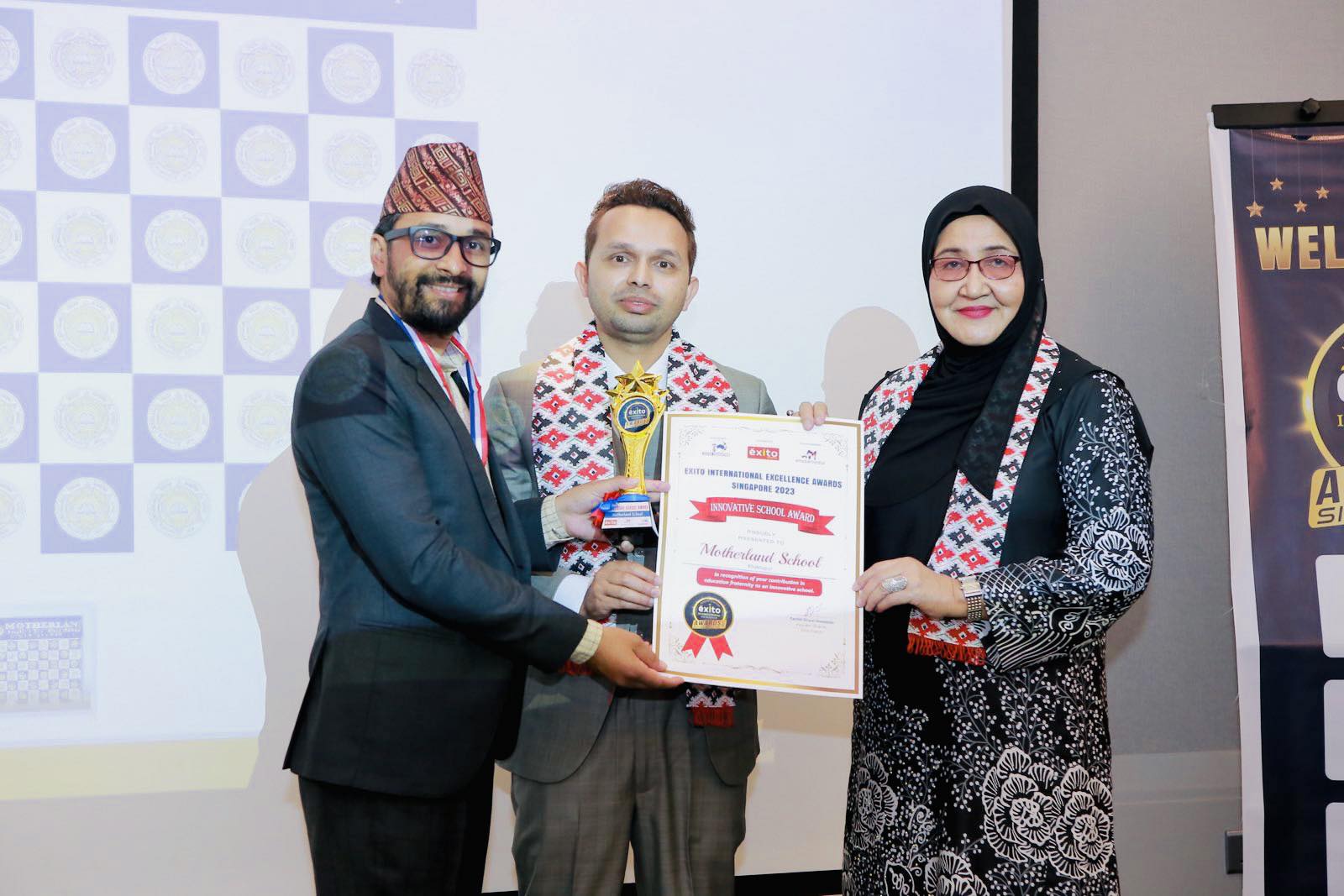 एक्जिटो एजुकेसन इन्टरनेसनल अस्ट्रेलियाको आयोजनामा सिंगापुर र मलेसियामा सम्पन्न एक्जिटो इन्टरनेसनल एक्सिलेन्स अवार्ड-२०२३, सिङ्गापुर र मलेसियामा उक्त अवार्ड प्रदान गरिएको हो । मदरल्याण्ड स्कुलले शैक्षिक गुणस्तर तथा सामाजिक क्षेत्रामा पनि योगदान दिएकोमा अब शिक्षामा सफलतापूर्वक नयाँ अभ्यास र प्रयोग गर्न उत्प्रेरित गर्दै अवार्ड प्रदान गरिएको हो । कार्यक्रममा मदरल्याण्ड सहित नेपालका ३३ वटा विद्यालयलाई विविध विधामा अवार्ड प्रदान गरिएको थियो ।