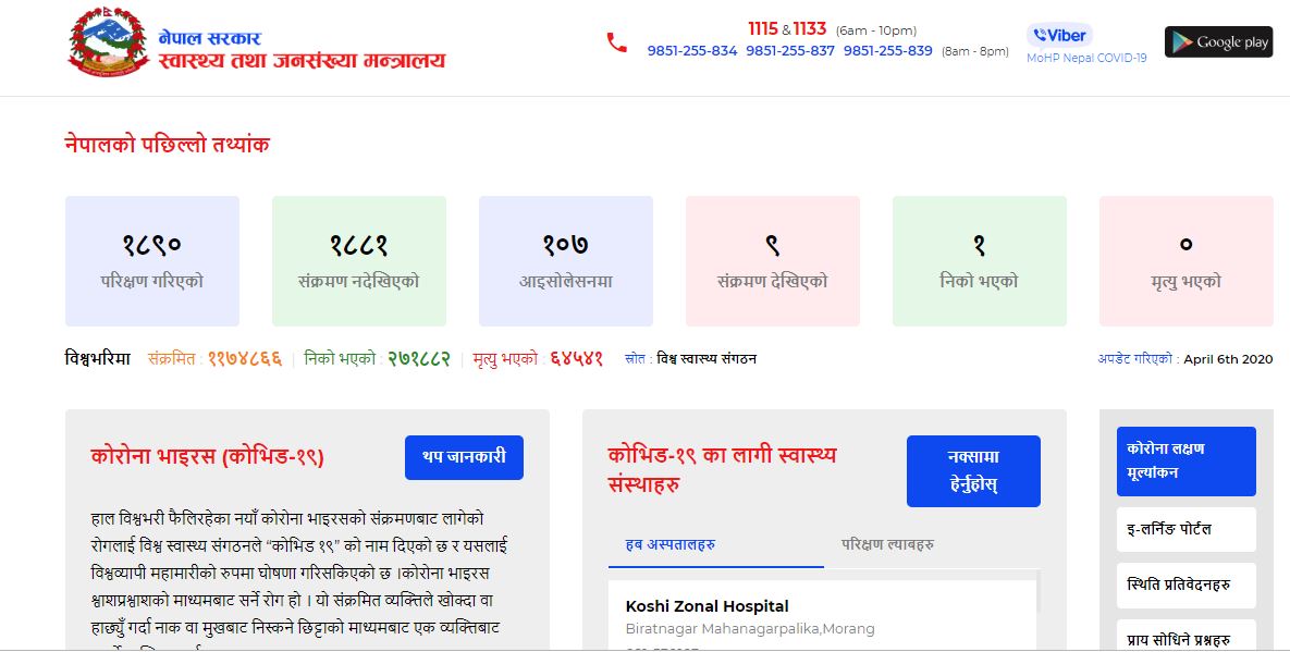 सोमबारसम्म काठमाडौंसहित देशभरी १०७ जना आइसोलेसन र ९ हजार १ सय ६८ जना क्वारेनटाइनमा रहेका छन् । संक्रमितको टेसिग जारी रहेको सोमबारको नियमित पत्रकार सम्मेलनमा स्वास्थ्य मन्त्रालयका प्रवक्ता डा. विकास देवकोटाले बताएका छन् ।