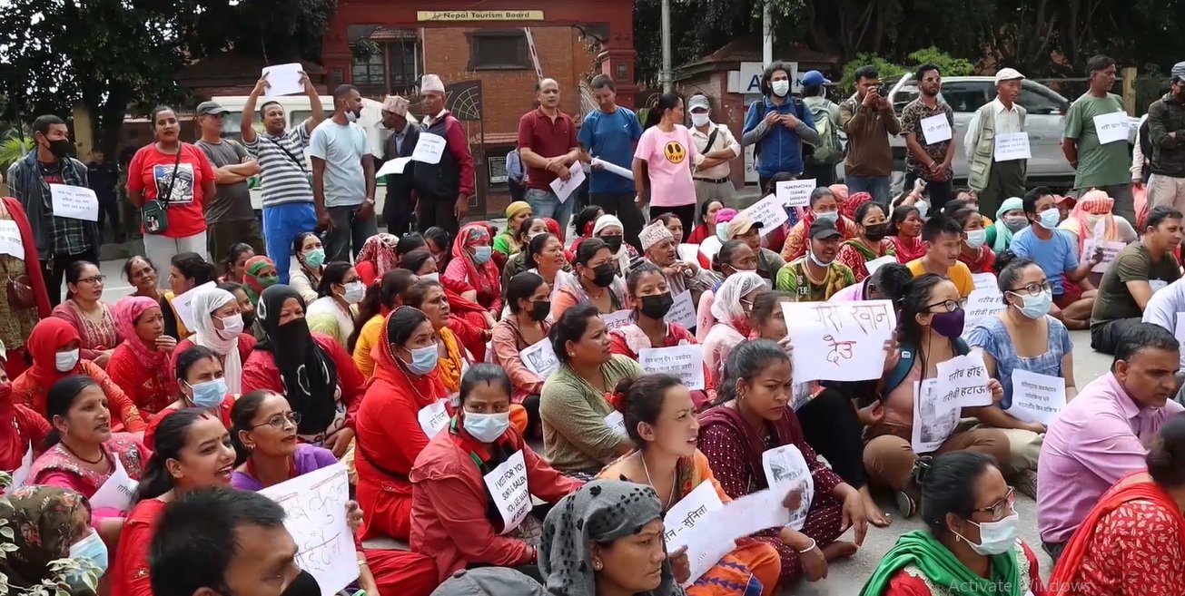 व्यवसायीहरुले शहर सबैका लागि की धनीका लागि मात्रै ? गरी खान देउ लगायतका नारा लगाएर आन्दोलन गरेका छन् ।