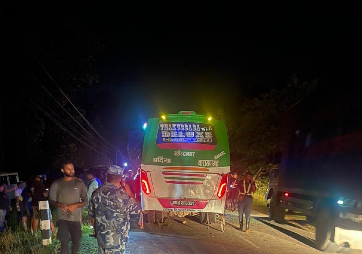 शुक्रबार राति दाङबाट बर्दिया जाँदै गरेको ना ७ ख २३२१ नम्बरको बस शुक्रबार बेलुका साढे ९ बजे बाँकेको राप्तीसोनारी गाउँपालिका-८ शमशेरगञ्जमा सडकमा रोकिराखेको ना ८ ख ६४०५ नम्बरको ट्रकसँग ठोक्किँदा चालकसहित सात जनाको मृत्यु भएको बाँकेका डिएसपी नारायण डाँगीले जानकारी दिए। मृत्यु हुनेमा बर्दिया ठाकुरबाबा नगरपालिका-३ का ५० वर्षीय काशिराम थारू, ५५ वर्षीया कस्तुरी थापा, ५० वर्षीया रूपा परियार, ४० वर्षीया जयन्ती थारू छन्। मृतक तीन जनाको भने परिचय खुलिसकेको छैन।