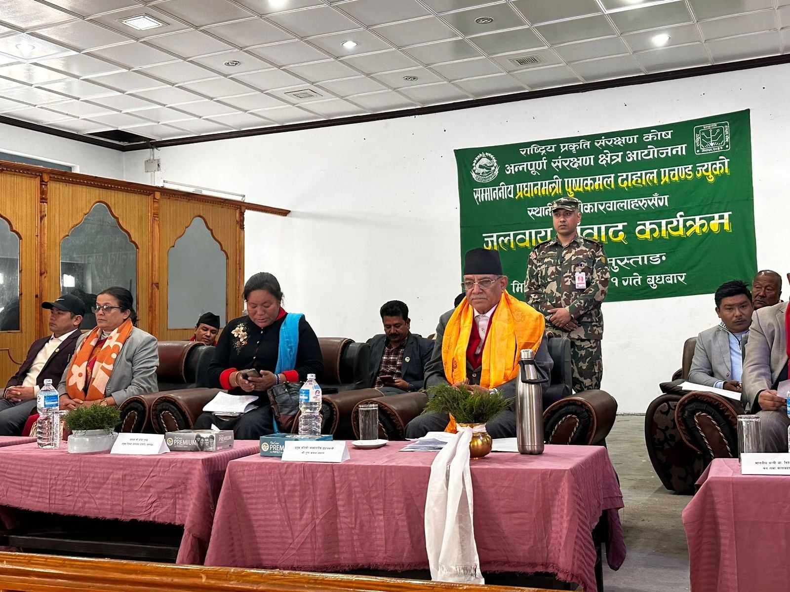 जोमसोम –  प्रधानमन्त्री पुष्पकमल दाहाल प्रचण्डले हिमालको संरक्षण गर्नु नेपालको मात्र जिम्मेवारी नभएर सिंगो विश्वको साझा दायित्व भएको बताएका छन् ।  बुधबार मुस्ताङ जिल्लाको जोमसोममा राष्ट्रिय प्रकृति र अन्नपूर्ण संरक्षण क्षेत्र आयोजनाद्वारा आयोजित जलवायु संवाद कार्यक्रममा बोल्दै प्रधानमन्त्री प्रचण्डले आफू अन्तर्राष्ट्रिय मञ्चहरूमा यसबारे गम्भीर रूपमा विषय राखेको बताए।