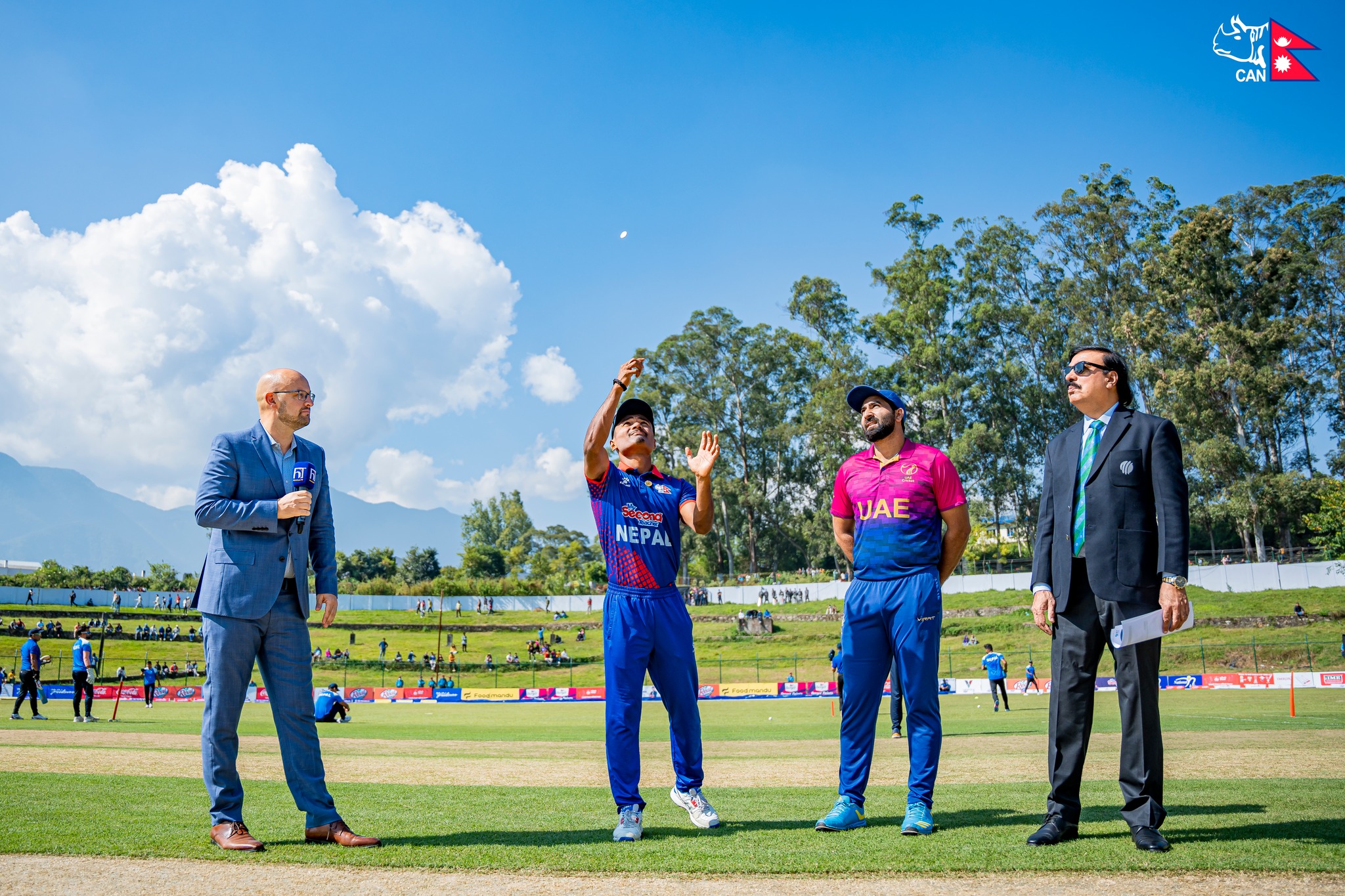 काठमाडौं – त्रिकोणात्मक टी–२०आई शृङ्खलाको फाइनलमा नेपालले यूएईविरुद्ध ब्याटिङ गरिरहेको छ । त्रिवि मैदानमा यूएईले टस जितेर फिल्डिङ रोज्दै नेपाललाई पहिले ब्याटिङको निम्तो दिएको हो ।