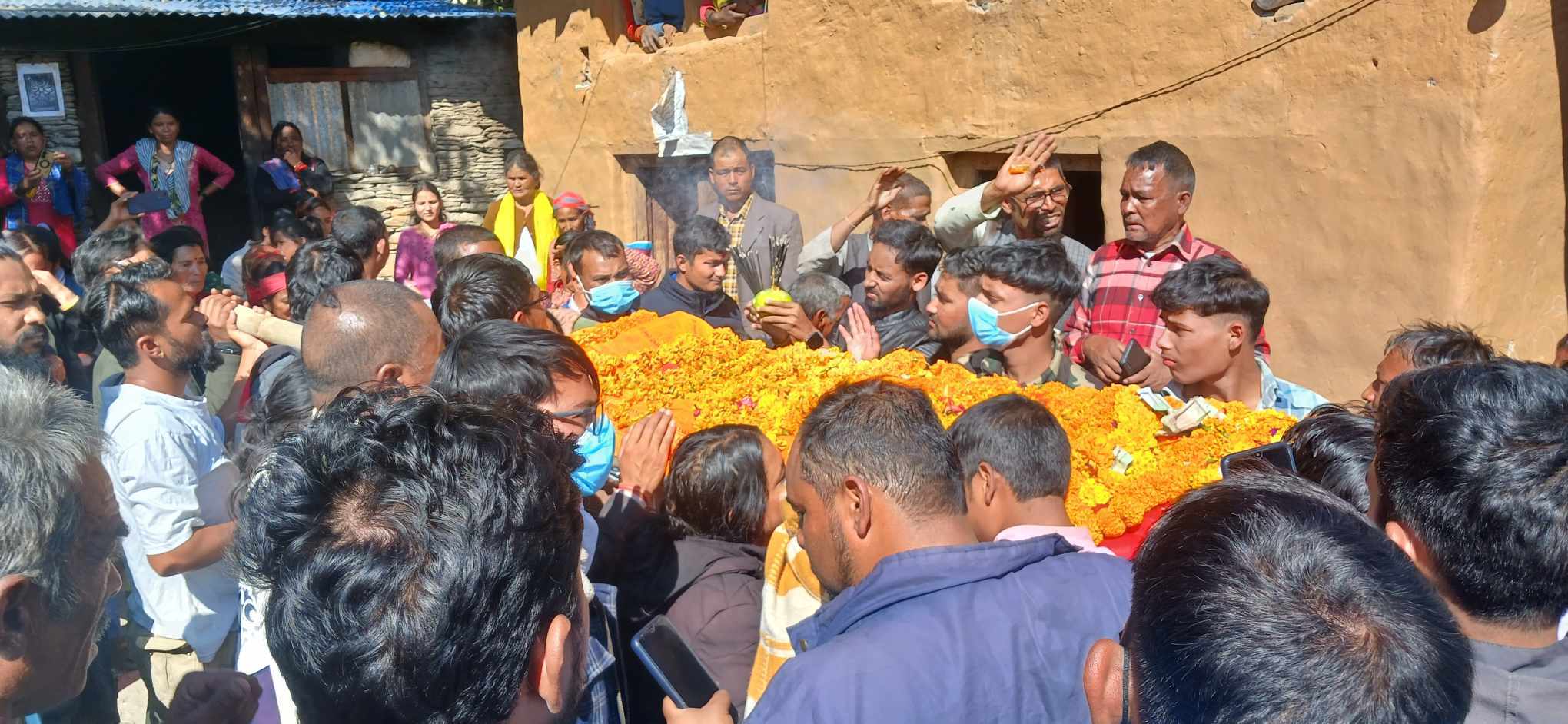 बझाङ – इजरायलमा मारिएका जयपृथ्वी नगरपालिका-११ का गणेश नेपालीको दाहसंस्कार गरिएको छ । हमास विद्रोहीको आक्रमणमा परी अक्टोबर ७ तारिखमा मृत्यु भएका गणेशको शुक्रबार भोपुरस्थित सेती नदी किनारमा दाहसंस्कार गरिएको हो । सबैतिर दसैंको रमाइलो भइरहेको बेला बझाङ को जयपृथ्वी नगरपालिका वडा नं ११भोपुर बस्ती यतिखेर शोकमा डुवेको छ । लर्न एण्ड अर्न कार्यक्रम अन्तर्गत इजरायल पुग्नुभएका सो गाउँका २५ वर्षीय गणेश नेपाली हमास आक्रमणमा परी मृत्यु घटनाका कारण उनको घरमा दसैंले छुन नसकेको हो । परिवारको आसा र भरोसा को छोरा एवम् घरको सहारा गणेश नेपालीको शरीर दसैंमा घर फर्कियो, तर मान्यजनबाट कहिल्यै टीका नथाप्ने र ग्रहण नगर्ने गरी बाकसमा आएको गणेशको पार्थिव शरीर सेति नदिमा आज सदाको लागि विलीन भएको छ ।