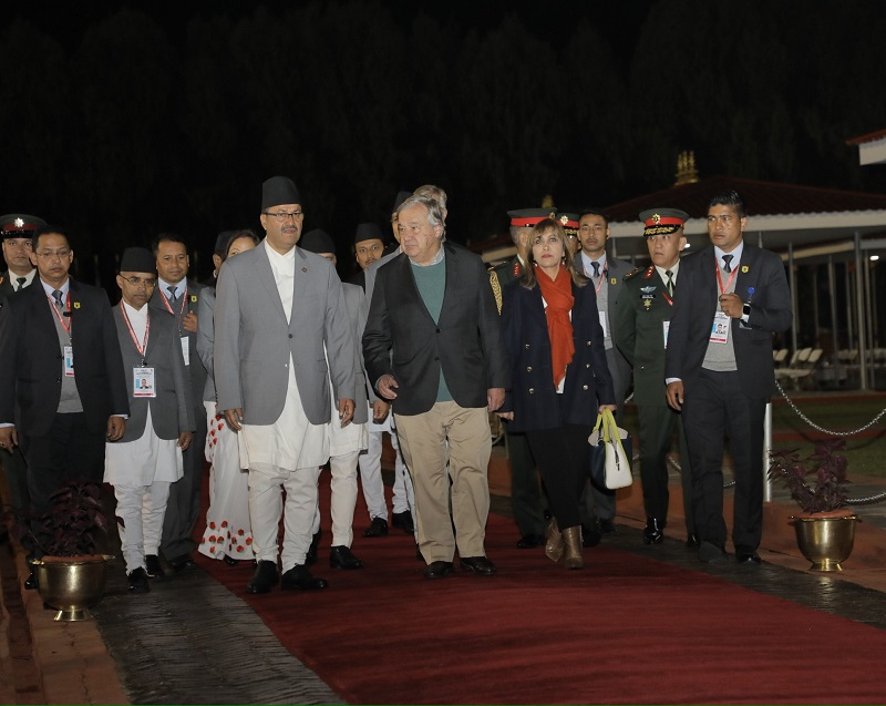 राष्ट्रसङ्घका महासचिवको करिब १५ वर्षपछि नेपालमा हुन लागेको यस भ्रमणलाई कुटनीतिक क्षेत्रमा महत्त्वकासाथ हेरिएको छ । महासचिव गुटेरेसले भ्रमणको पहिलो दिन आज राष्ट्रपति रामचन्द्र पौडेलसँग राष्ट्रपति कार्यालय र प्रधानमन्त्री पुष्पकमल दाहाल ‘प्रचण्ड’ सँग उहाँको कार्यालयमा शिष्टाचार भेट गर्नुहुने कार्यक्रम रहेको परराष्ट्र मन्त्रालयले जनाएको छ ।