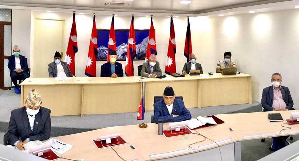 काठमाडौँ – प्रधानमन्त्री केपी शर्मा ओली र सात प्रदेशका मुख्यमन्त्रीबीच आज कोरोना भाइरस रोकथाम र नियन्त्रणबारे भिडियो कन्फरेन्सका माध्यमबाट भई लक डाउनलाई अझ प्रभावकारी बनाउने विषयमा छलफल भएको छ ।