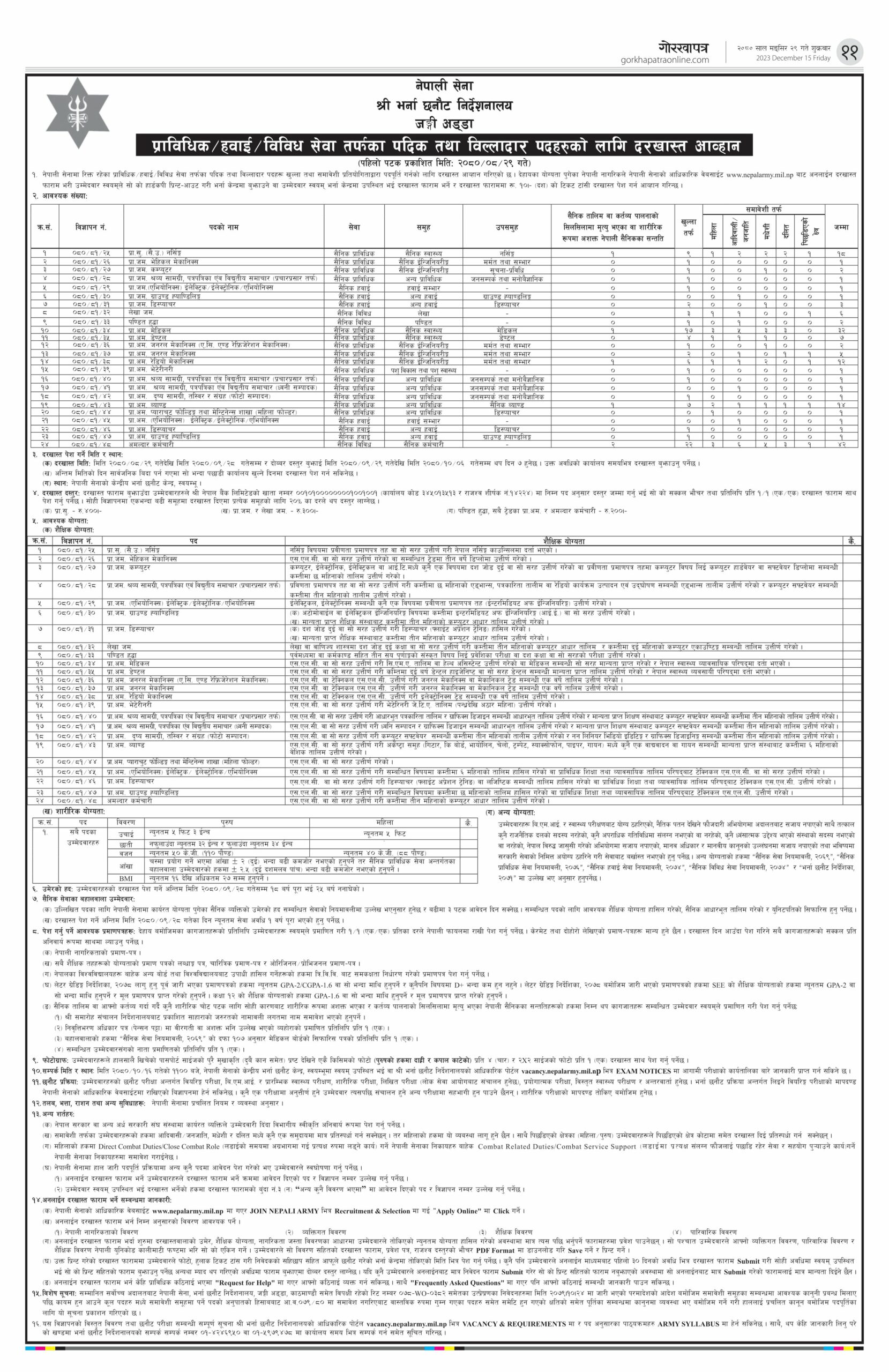 नेपाली सेनाले विभिन्न रिक्त पदहरूका लागि दरखास्त आह्वान गरेको छ। सेनाले सूचना प्रकाशन गर्दै प्राविधि, हवाई लगायत विविध सेवामा रिक्त १२५ कर्मचारी मागेको हो।