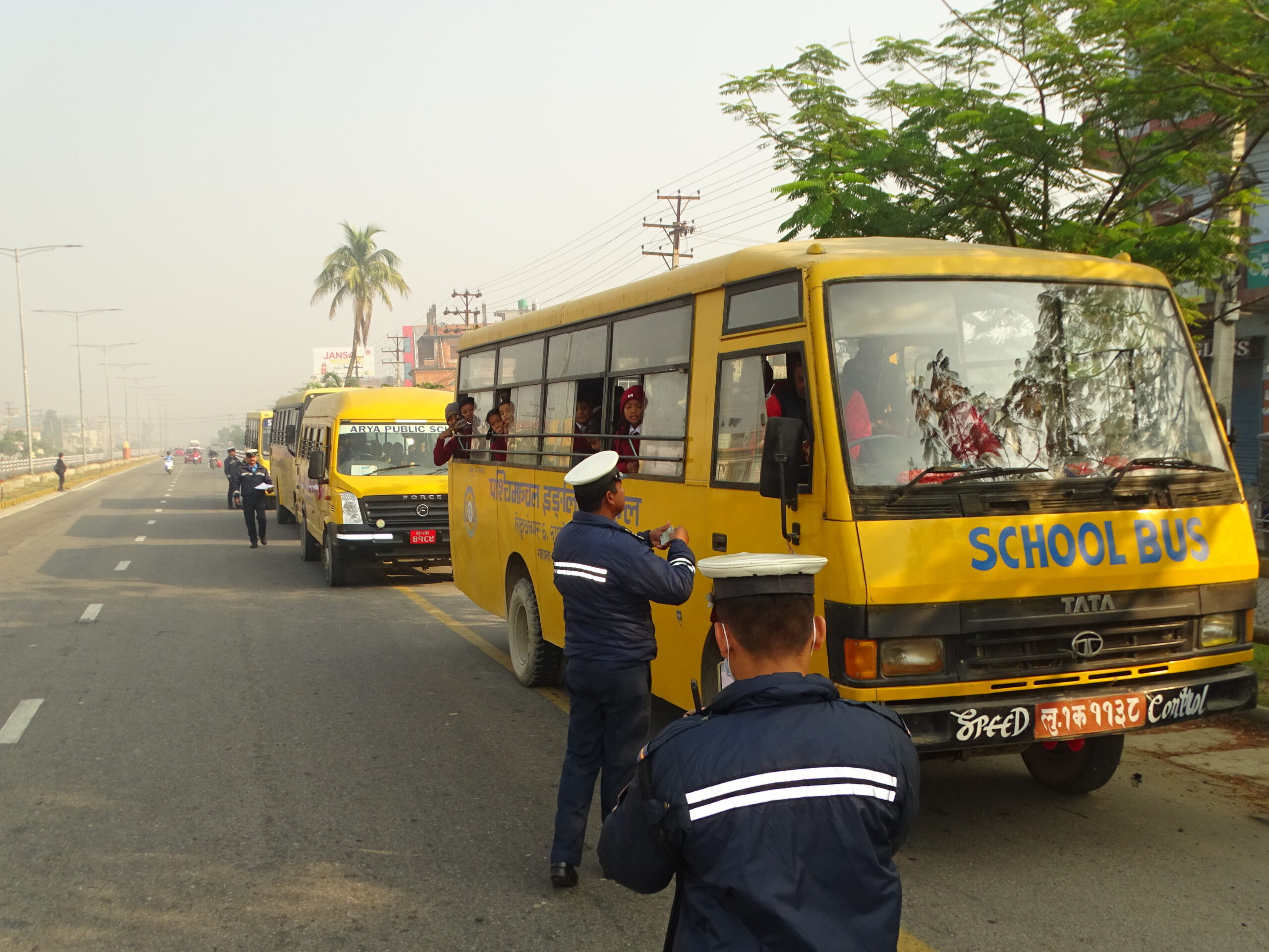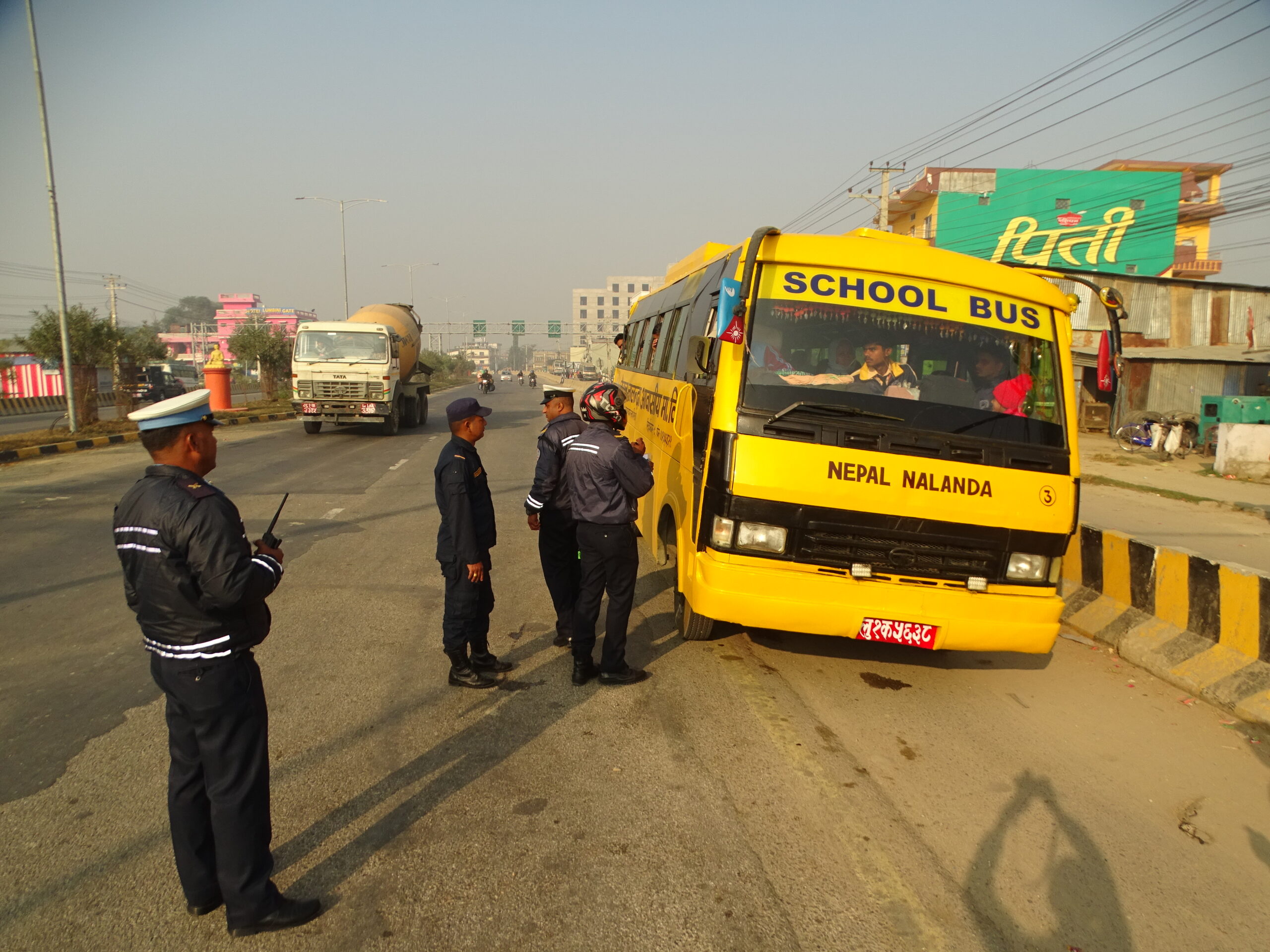 चर्को मुल्य लिएर पनि विद्यार्थीहरुलाई सिट अनुसारको सुविधा नदिएको, विद्यार्थीहरुलाई सास्ती दिएको भन्ने गुनासो ट्राफिक प्रहरीमा आएपछि जिल्ला ट्राफिक प्रहरी कार्यालयले बिद्यालयको यस्तो अवश्था नियन्त्रण गर्न बिशेष अभियान थालेको छ । कार्यालय र मातहतका निकायले स्कुल बस चेकजाँचको क्रममा सम्झाई बुझाई गरेको छ । ‘हामीले पहिलो दिन अधिकांस विद्यालयका बस चालकलाई सम्झाई बुझाई छाडेका छौ, चेकजाँच गरिएको बस मध्ये अधिकांसले क्षमता भन्दा बढि यात्रु बोकेको पाइएको छ भने अधिकांस बस निर्देशिका विपरित रहेकोले सचेत गराइएको छ, उनले भने ।