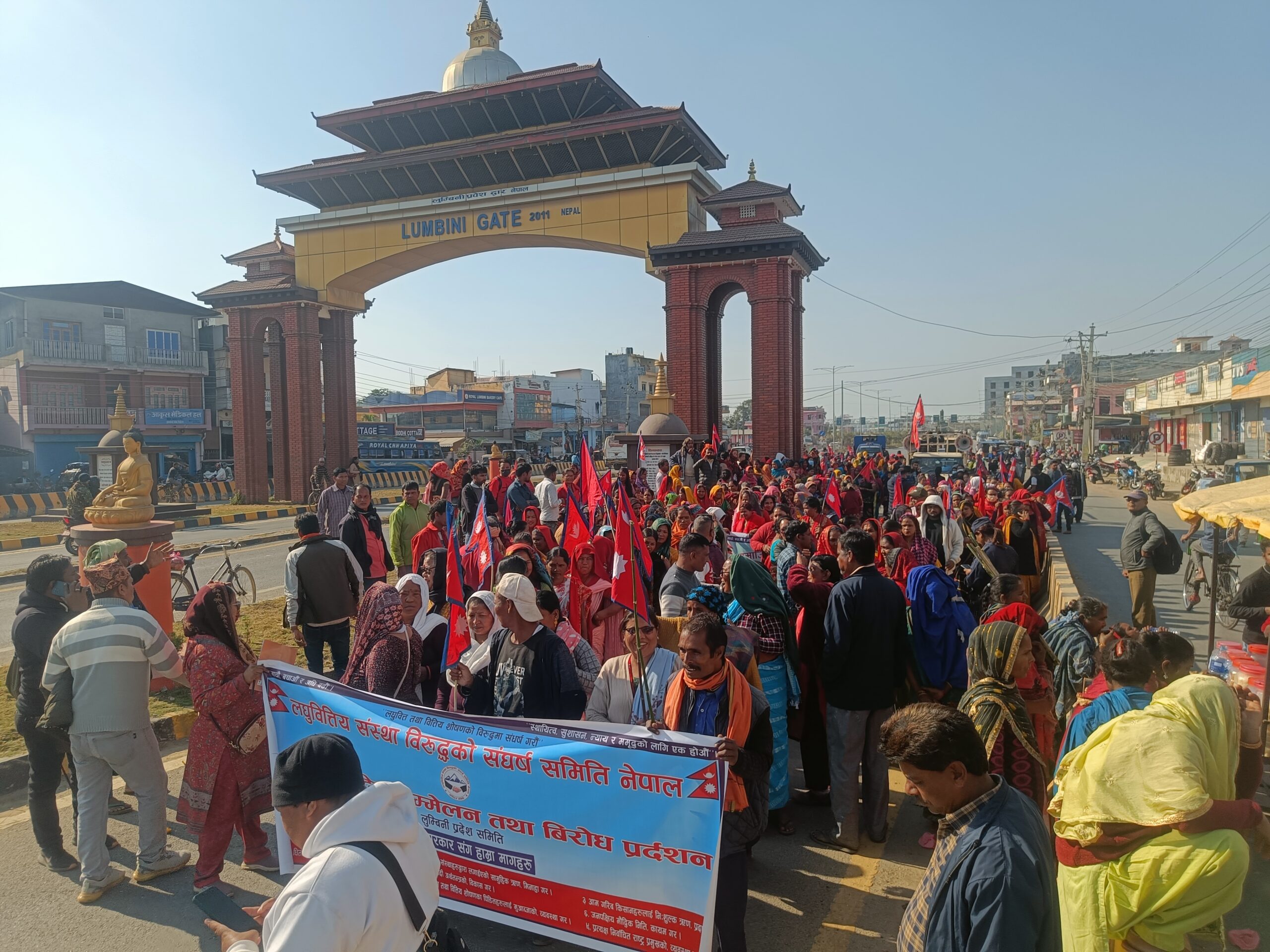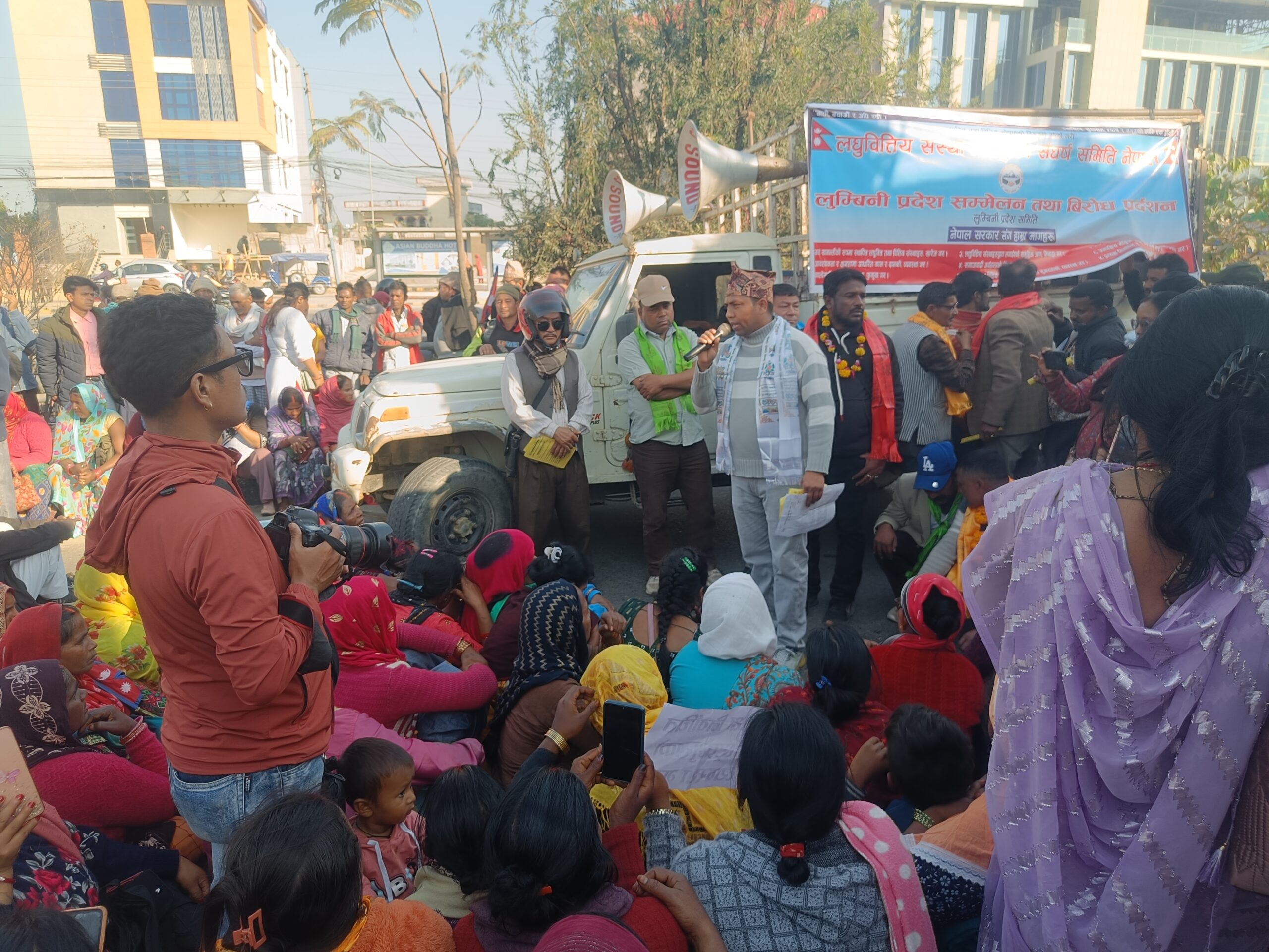 भैरहवाको लुम्बिनी गेटबाट सुरु भएको लुम्बिनी प्रदेश सम्मेलन तथा विरोध प्रदर्शन राष्ट्र बैंक गाडि कोणसभामा परिणत भएको थियो । सो अवसरमा बोल्दै संघर्ष समितिका केन्द्रिय अध्यक्ष मनिराम ज्ञवाली, लुम्बिनी प्रदेश अध्यक्ष बद्री देवान, गगन विश्वकर्मा, सिखा रेग्मी, अब्दुल शाह, कोशी इन्चार्ज,रमेश सुनार, प्रदेश इन्चार्ज रोमन थापा लुम्बिनी प्रदेशका १२ वटै जिल्लाका अध्यक्ष लगायतले लघुवित्तको कारणले परिवार उजाडिन पुगेको, शोषणमा परि आत्महत्या त्था ज्यान गुमाएको, ऋण तिर्दा समेत बैंकहरुले कालोसूचिमा राखेको बताए ।