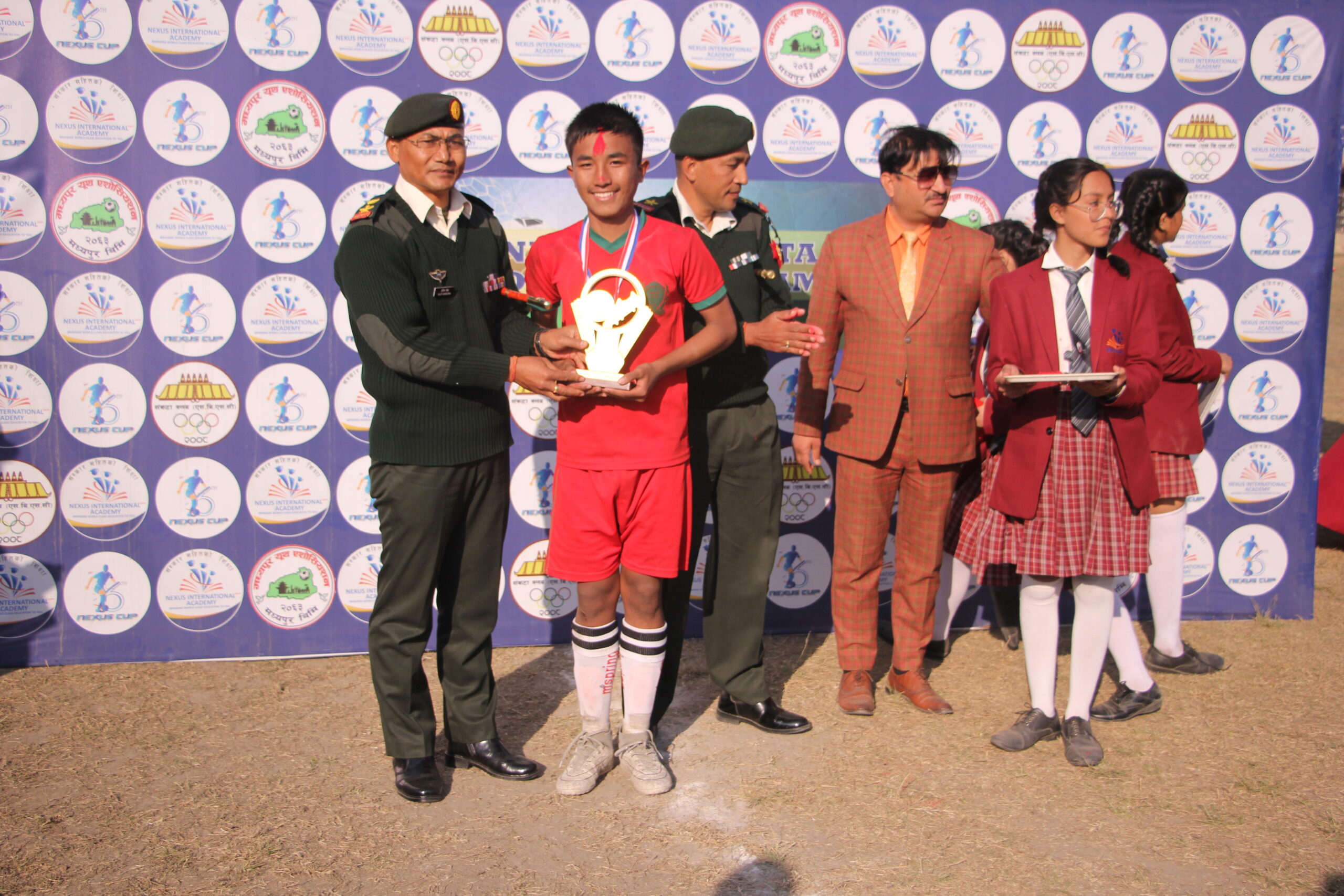 यस्तै विभिन्न विधामा ट्रफि तथा मेडल प्रदान गरिएको छ । जसमा वेष्ट प्लेयर अफ द टुर्नामेन्टको अवार्ड गेटवे एकेडेमीका प्रदिप खत्रीले प्राप्त गरेका छन् भने वेष्ट किपरतर्फको अवार्ड गेटवेका क्याप्टेन रोहन महतले प्राप्त गरेका छन् । यसैगरी वेष्ट डिफेन्डरतर्फको अवार्ड नेक्सस स्कुलका हार्दिक विक्रम विष्टले पाएका छन् ।
