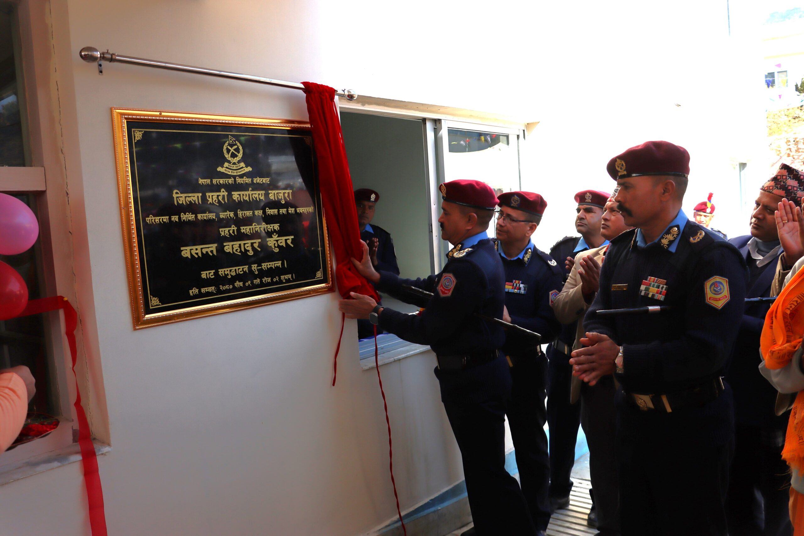 बाजुरा, प्रहरी महानिरीक्षक बसन्त बहादुर कुँवरले जिल्ला प्रहरी कार्यालय बाजुरा परिसरमा नवनिर्मित कार्यालय, निवास, ब्यारेक, हिरासत कक्ष तथा मेश भवनहरूको सोमबार आयोजित एक कार्यक्रमबीच उद्‍घाटन गर्नुभयो । साथै उहाँले उक्त नवनिर्मित भवनहरूको निरीक्षण समेत गर्नुभयो ।